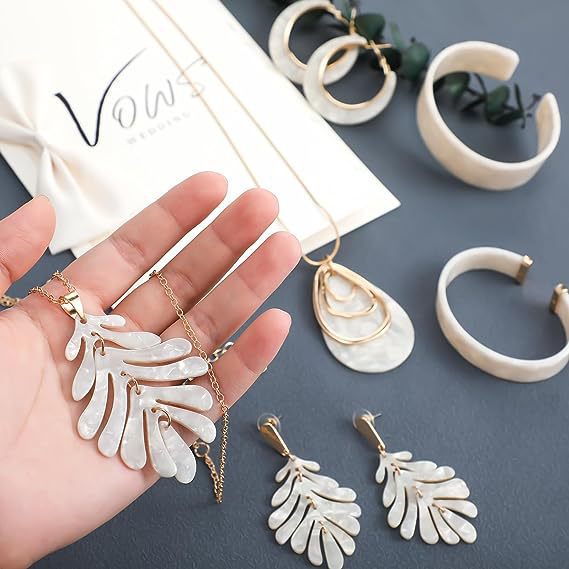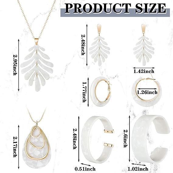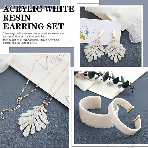 アマゾンの白い木の葉のイヤリングのネックレスのブレスレットセットの個性のアクリルの6セットの組み合わせのアクセサリーの女性
