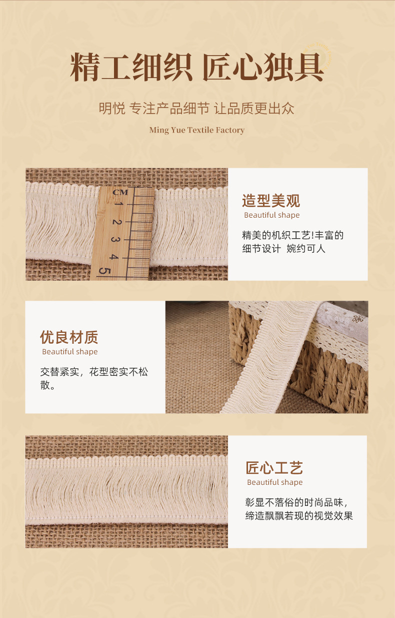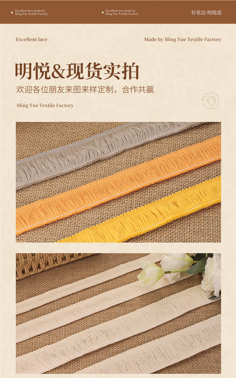 下单前联系客服改价提前加税点1%开普票现货白色纯棉单边流苏毛线排须棉线花边服装家纺抱枕地毯辅料批发