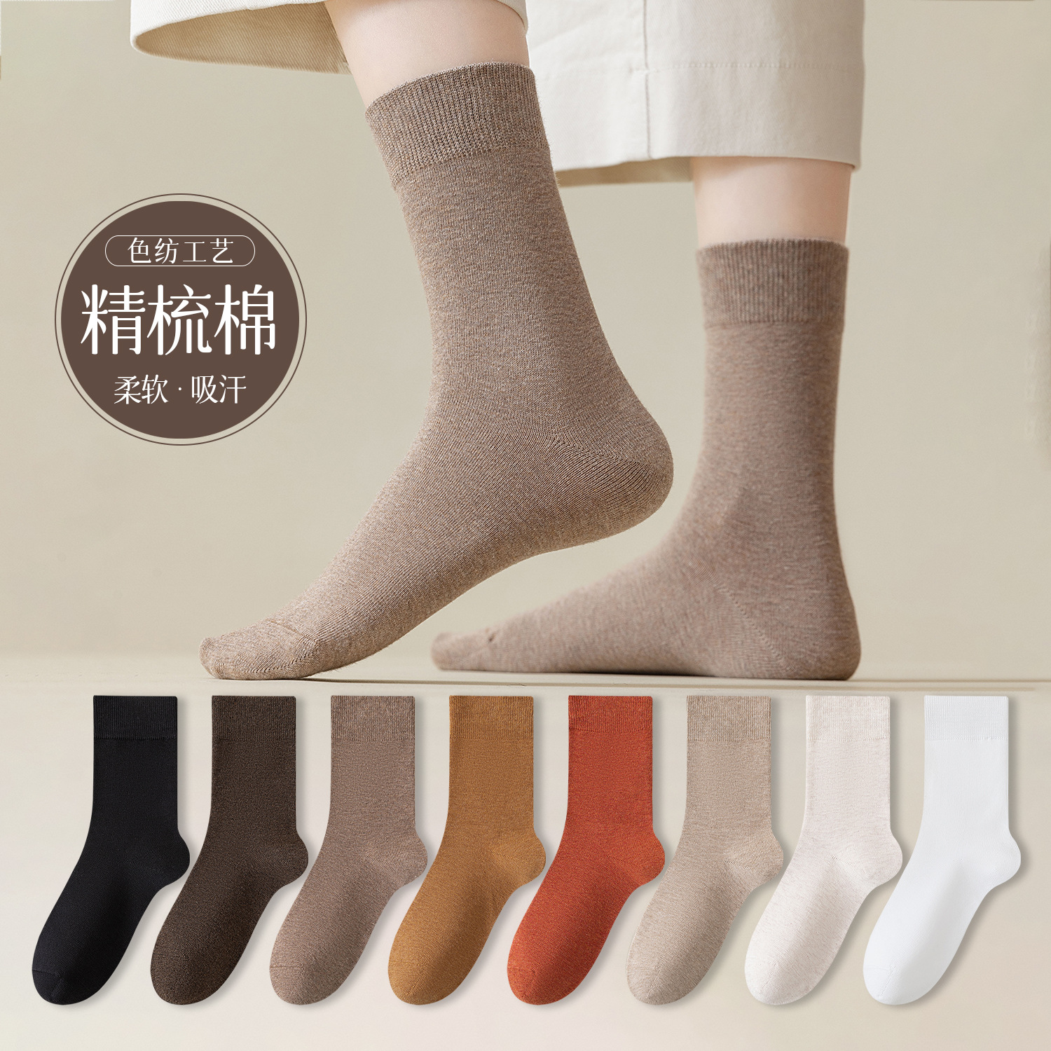 Zhuji 靴下 レディース 春秋 ミッドチューブソックス 綿靴下 純綿靴下 レディース カジュアル 秋 吸汗消臭 抗菌 レディース靴下