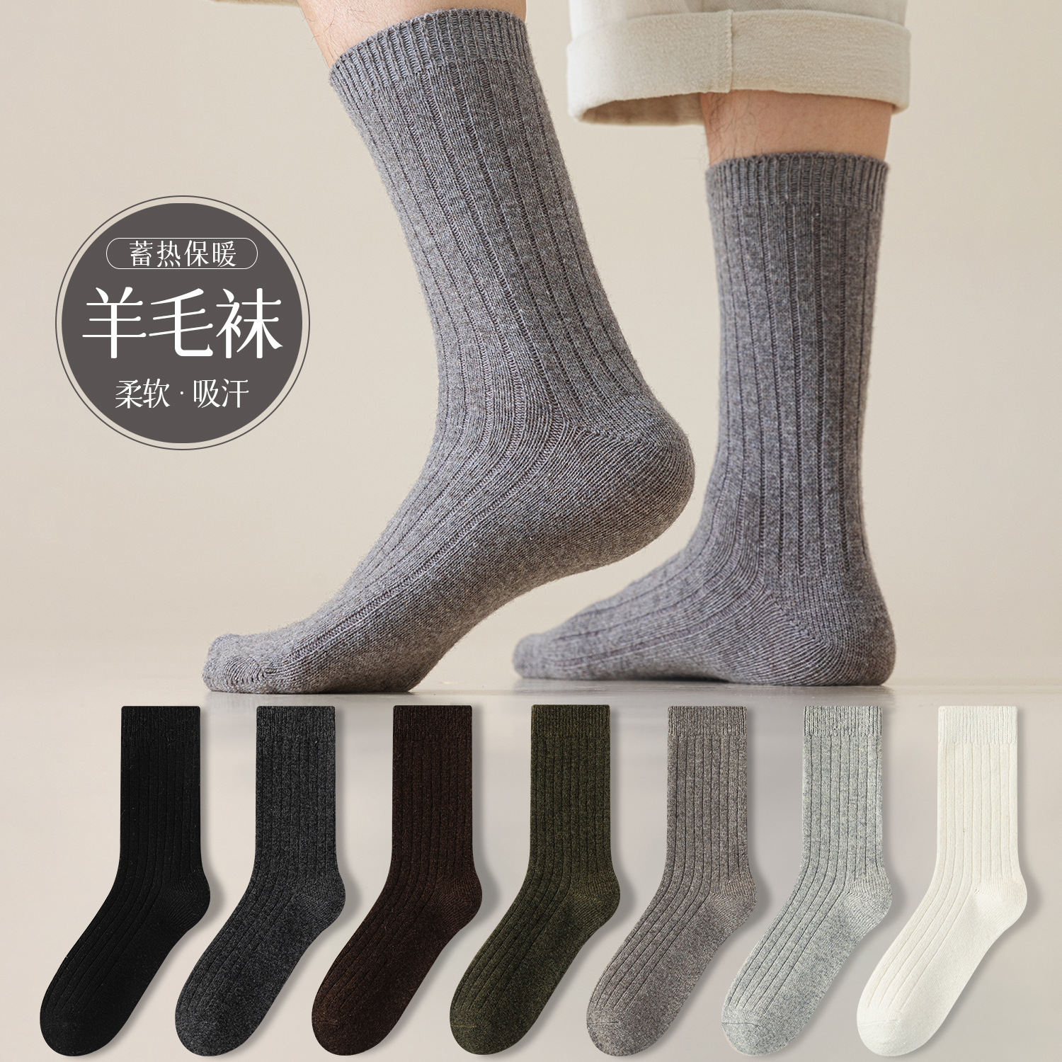 袜子男秋冬中筒袜羊毛袜保暖舒适不勒脚纯色休闲百搭诸暨袜子批发