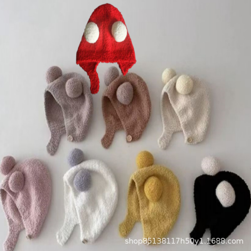 Ins韓国版かわいいボール赤ちゃん耳保護帽子秋冬純色ぬいぐるみ赤ちゃん赤ちゃんニット帽子