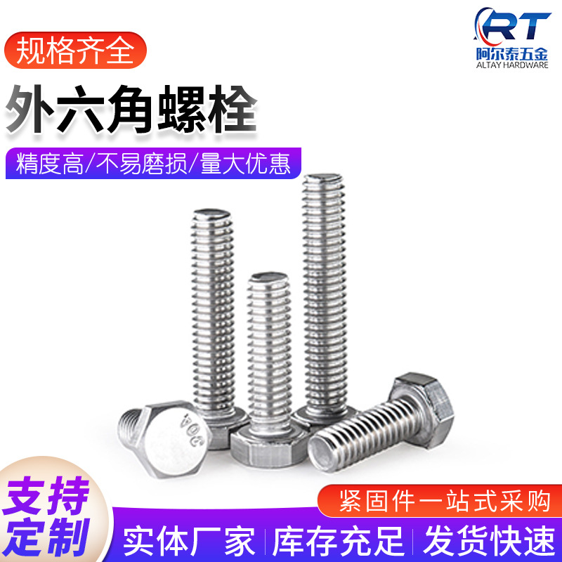 304ステンレス外六角ボルトdin933全歯延長六角頭スクリューねじM4-M14