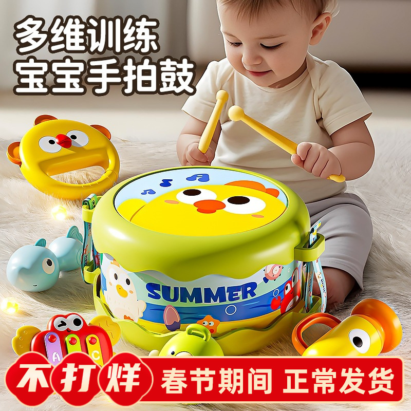 宝宝益智早教摇铃手拍敲打鼓0-12个月音乐启蒙套装婴幼儿打击乐器