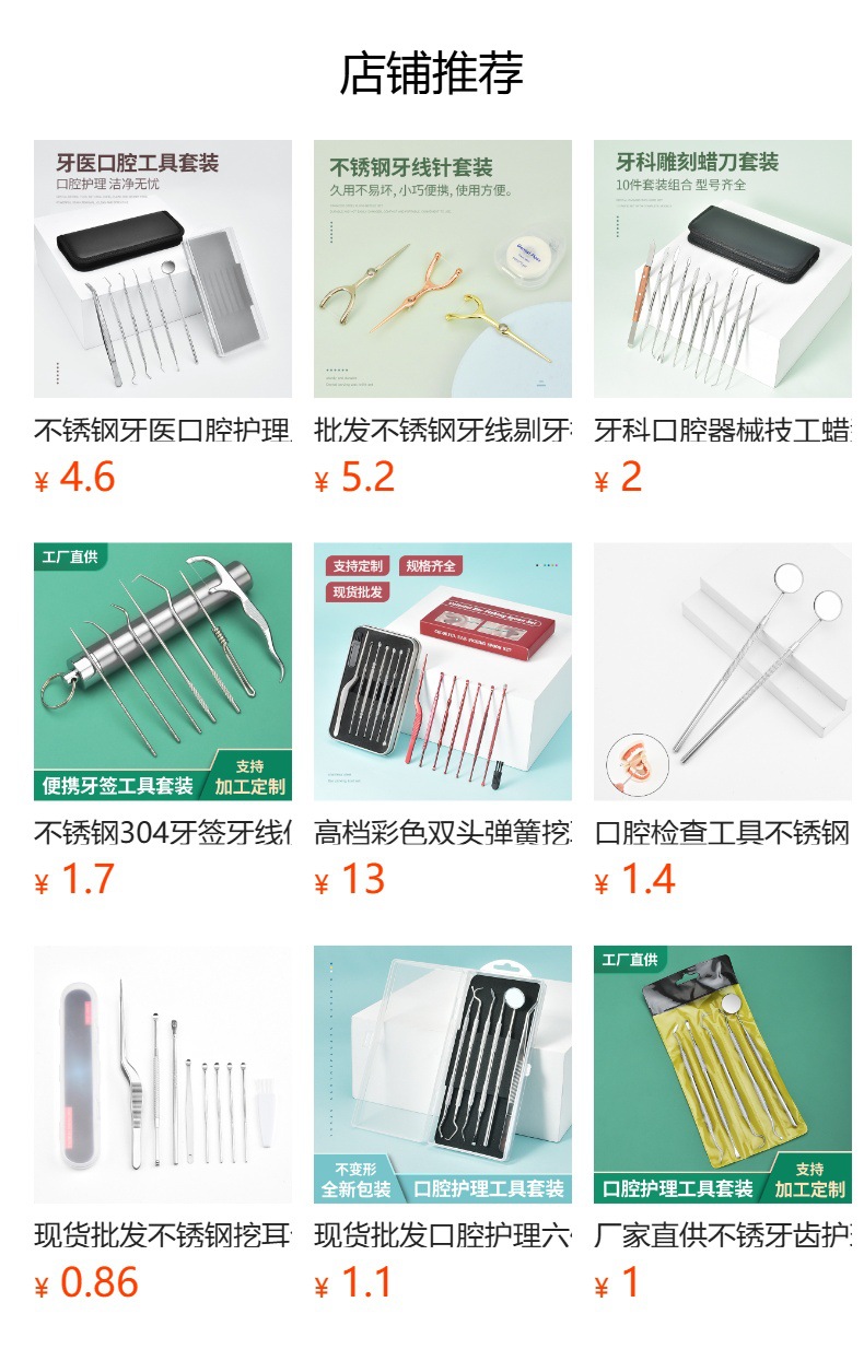 ステンレス製歯科器具、口腔内視鏡、プローブ、ステンレス製つまようじ、ナイフ、歯石除去ツール