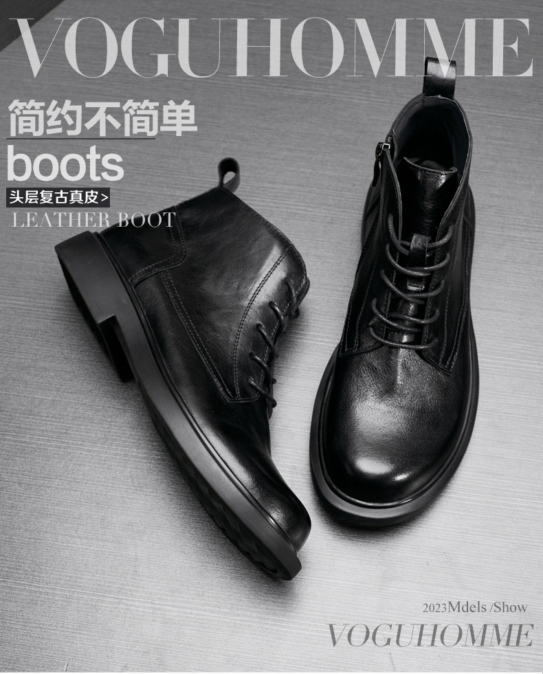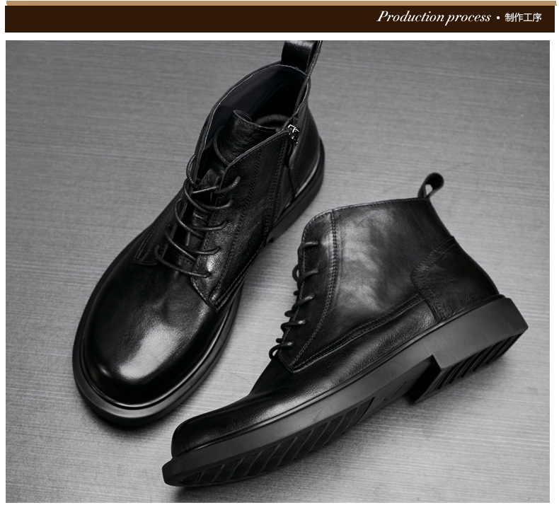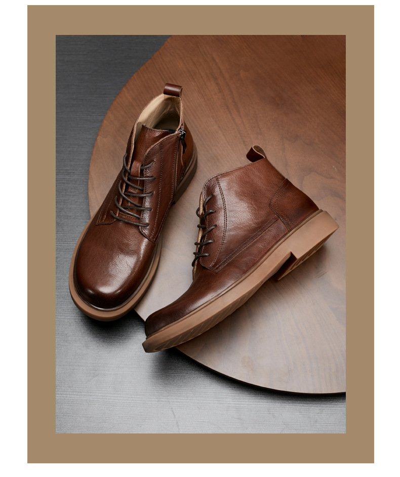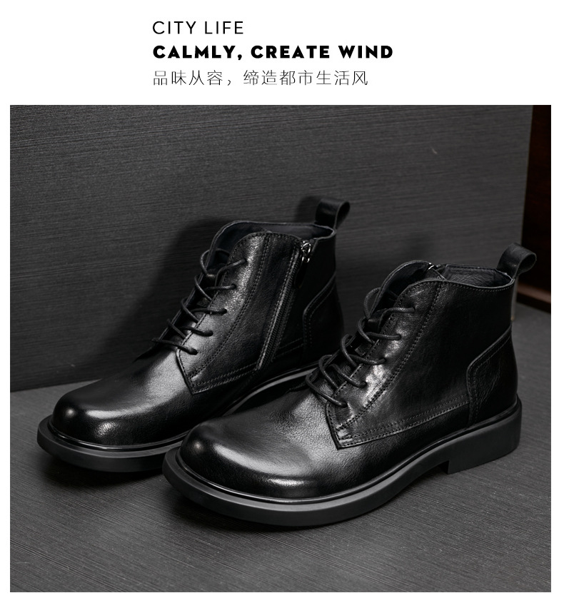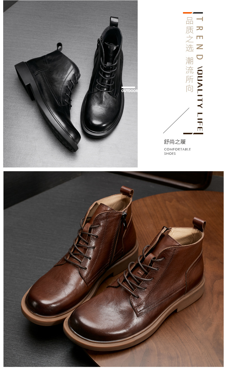 8826-2英倫皮靴マーティン靴ファッション復古手作り古い男ブーツの頭層牛革ジッパーの高い靴