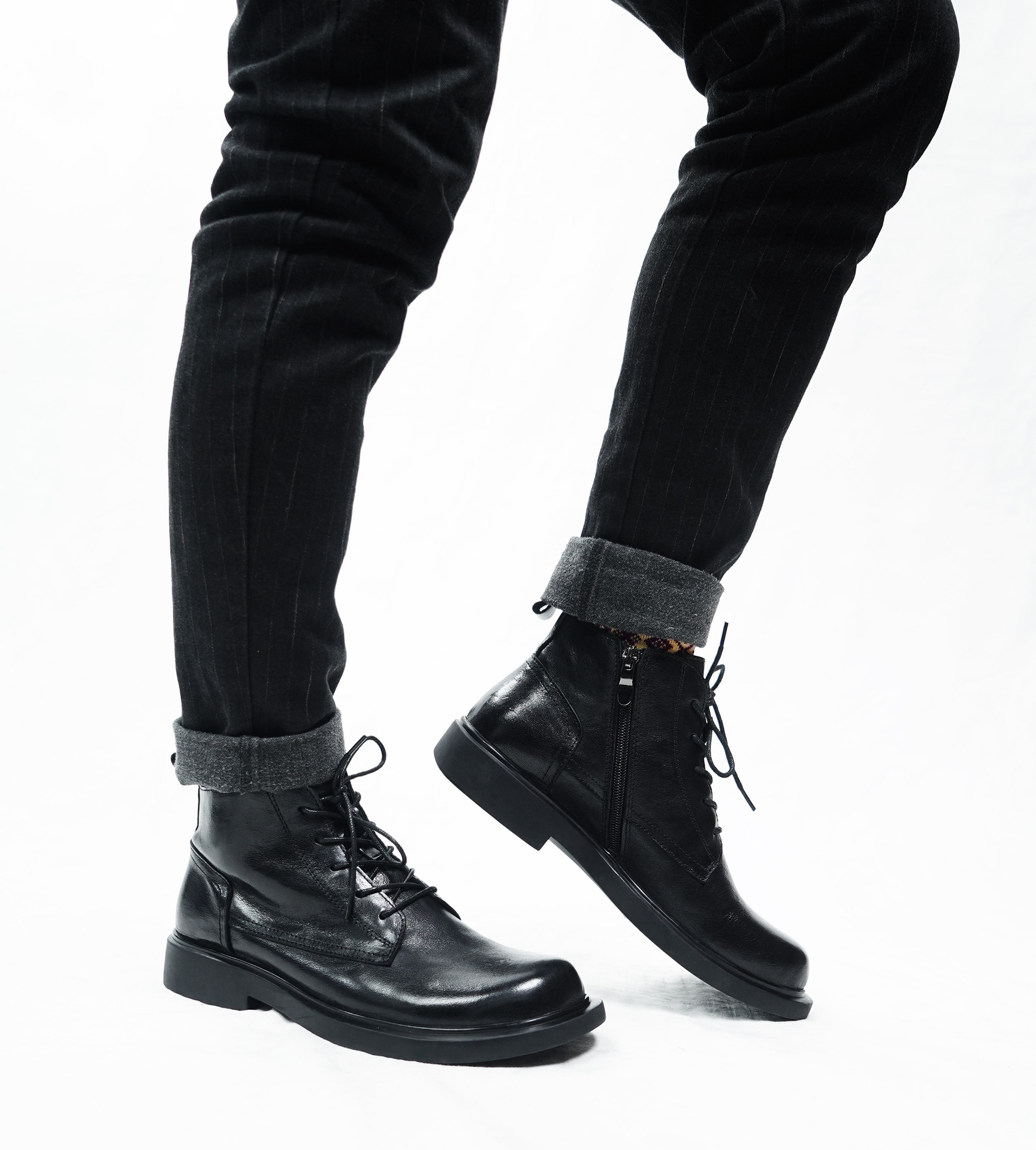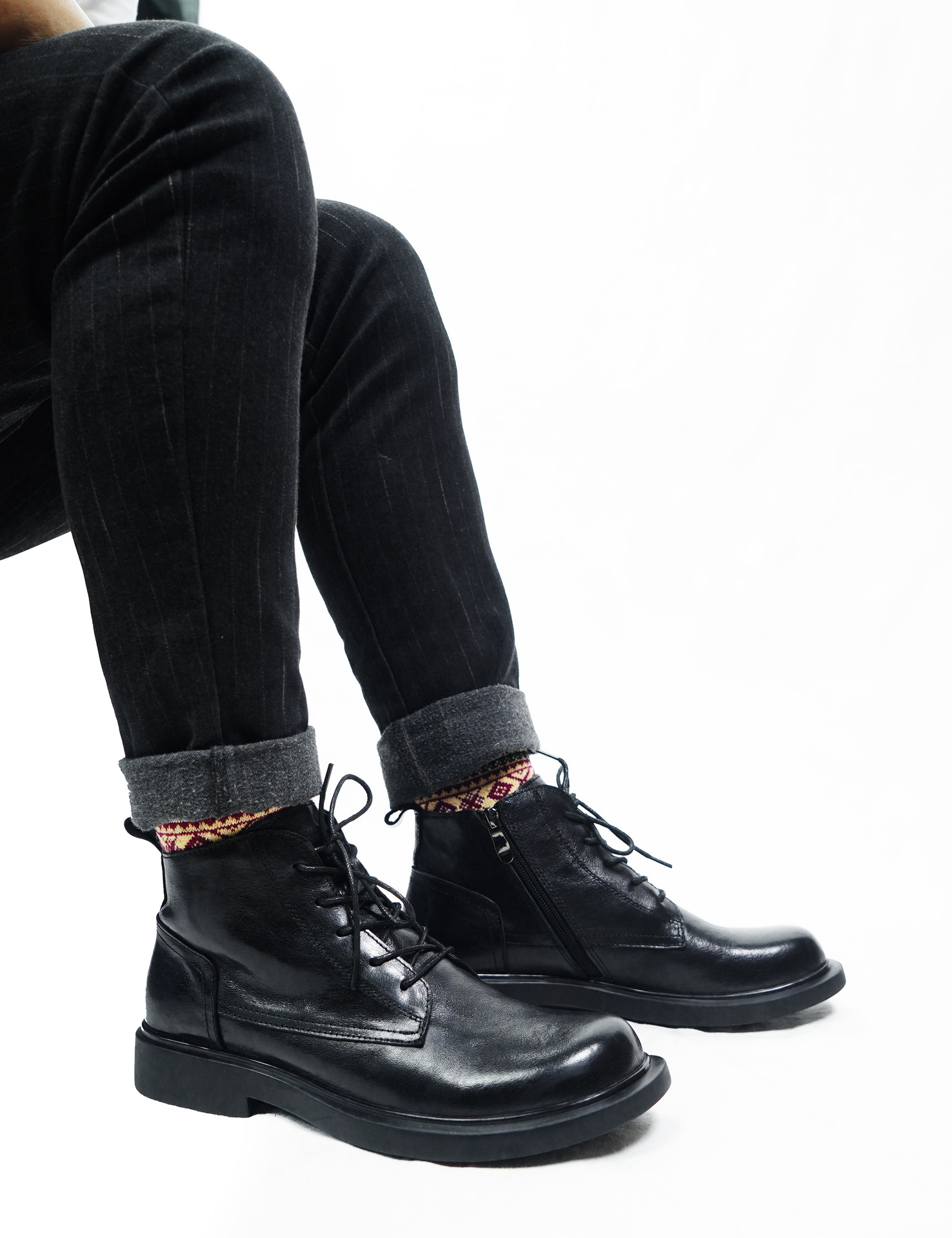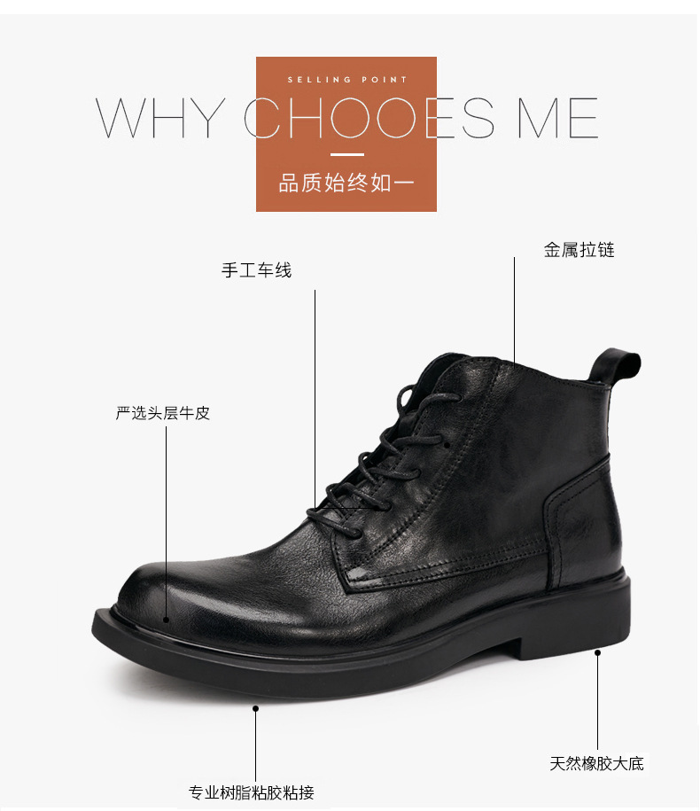 8826-2英倫皮靴マーティン靴ファッション復古手作り古い男ブーツの頭層牛革ジッパーの高い靴