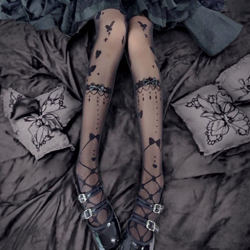 Lolita{蝶花之恋}甜心薄款提花日系女夏薄款系洛丽塔蝴蝶结连裤袜