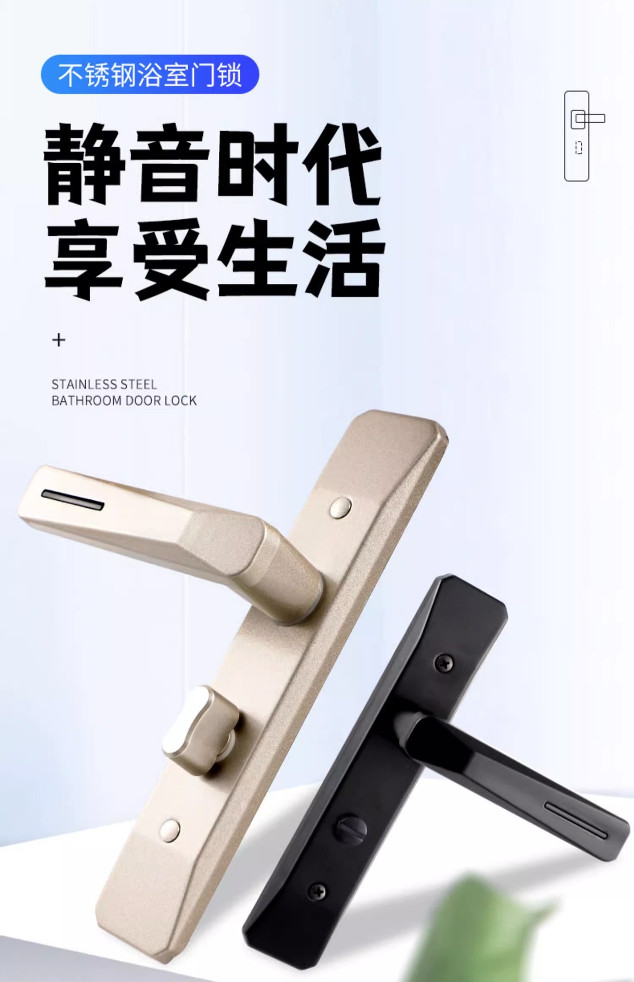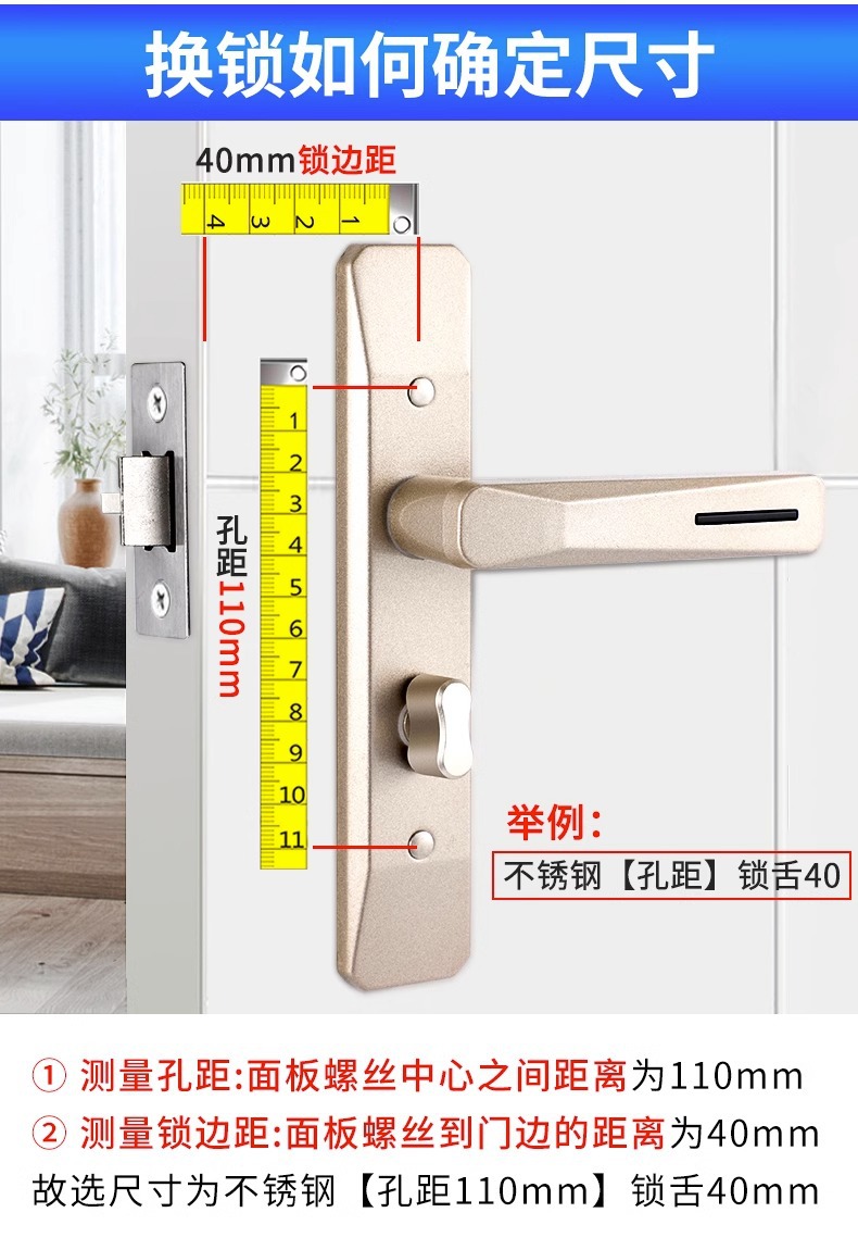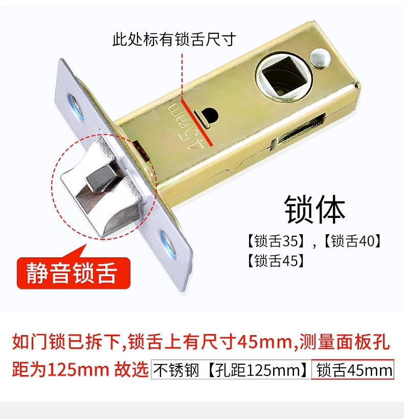 卫生间门无钥匙铝合金厕所洗手间门不锈钢房门锁通用型家用执手锁