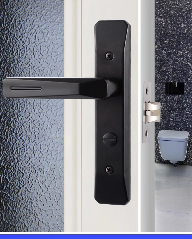 浴室用シングルブラック静音ドアロック アルミ合金製ドア 洗面所・トイレ汎用ドアハンドル ラベル付きセルフピックアップ