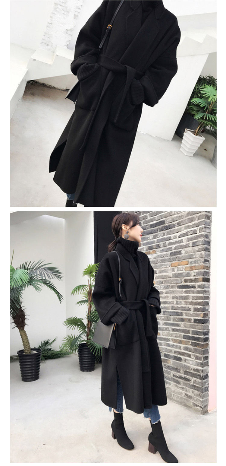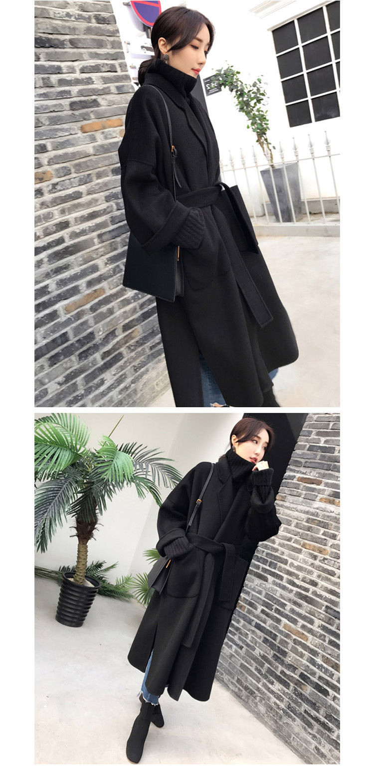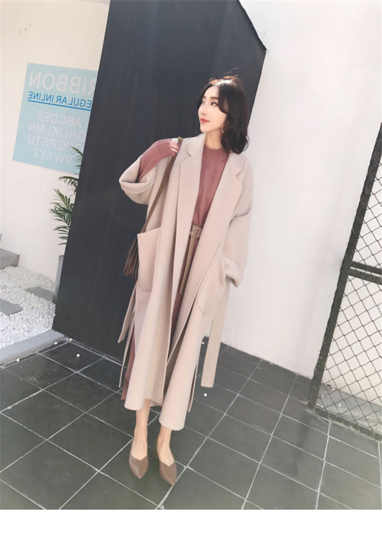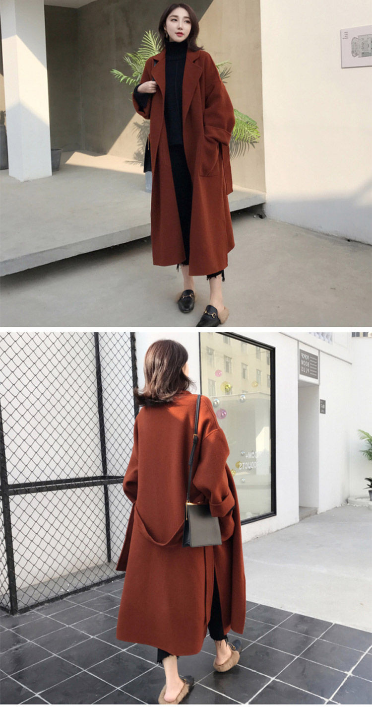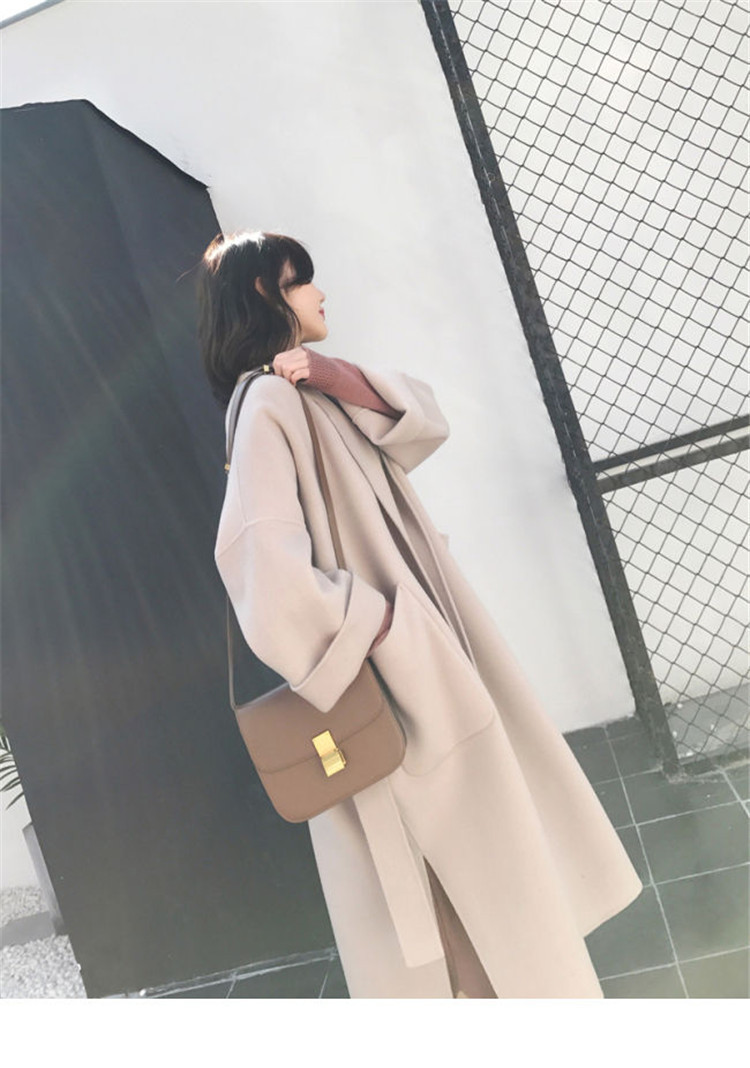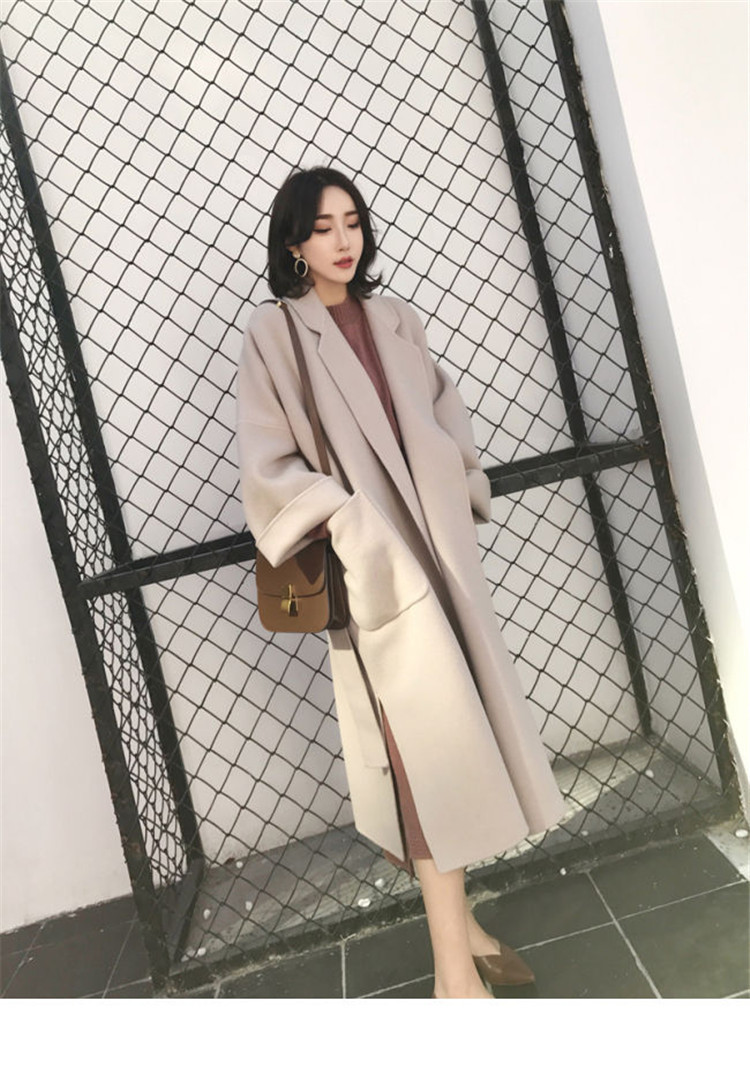 カシミヤコートの怠惰な風の中の長さは2024秋冬の新型の韓国版のゆったりしている学院の風の森系の毛のコートの女性です。