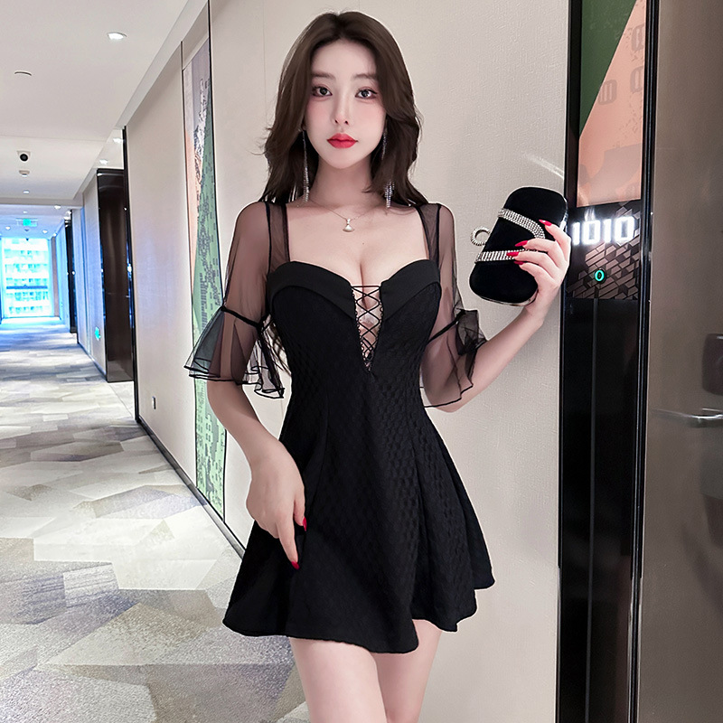 ワンピース2024新型修身が痩せているセクシーなケーキスカートのストラップが空のクラブ技師の作業服5381
