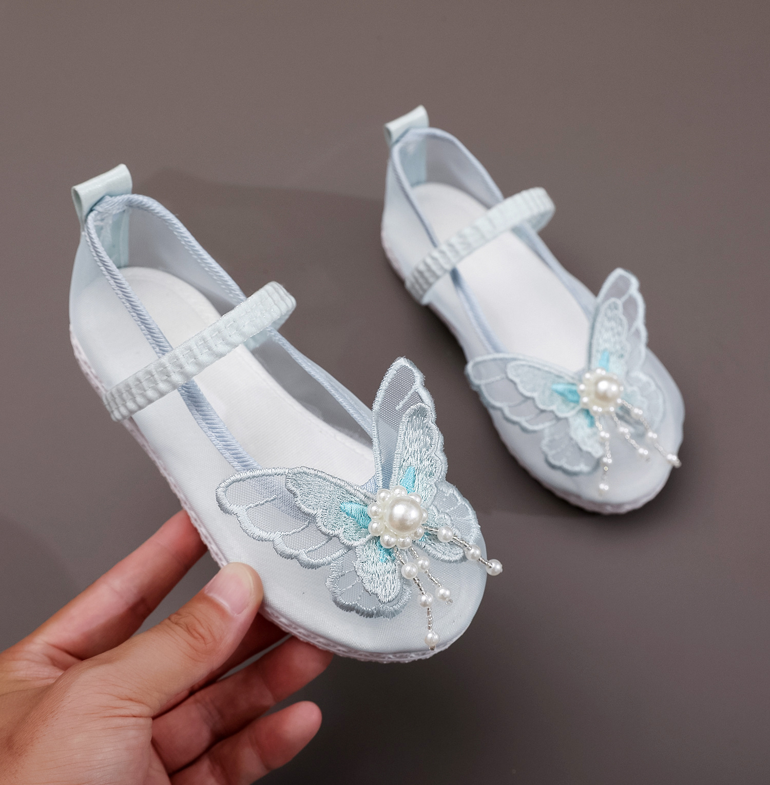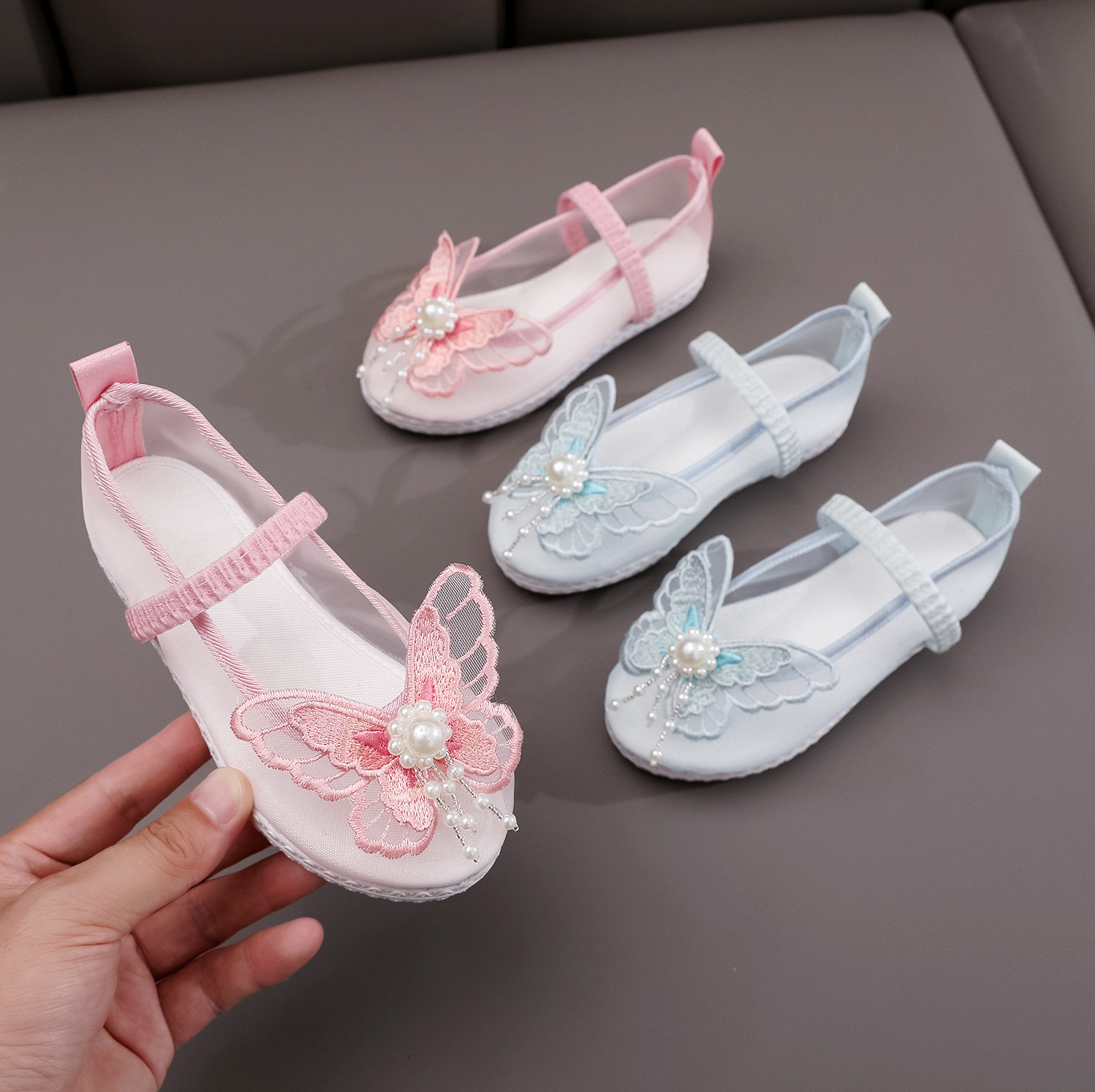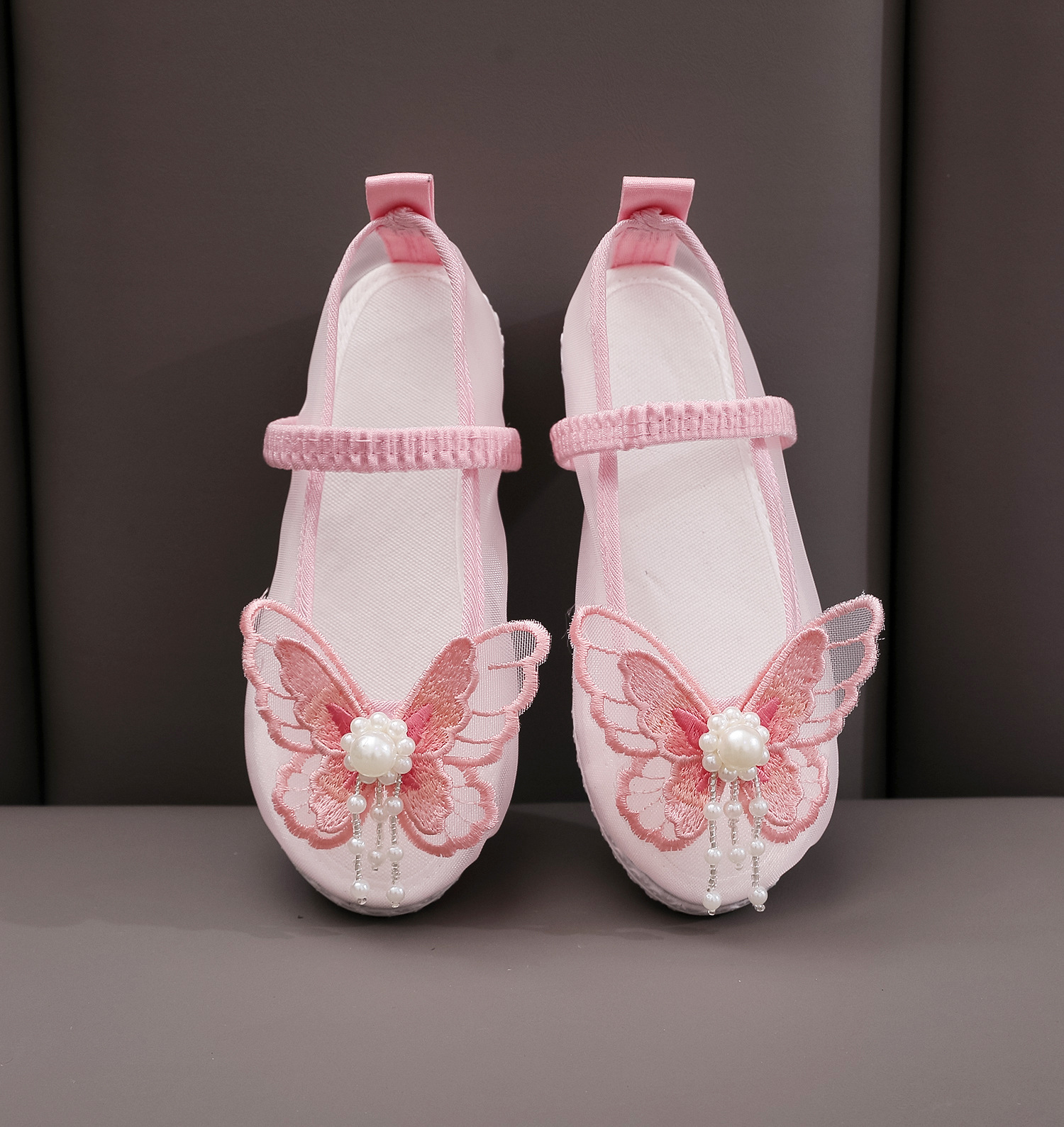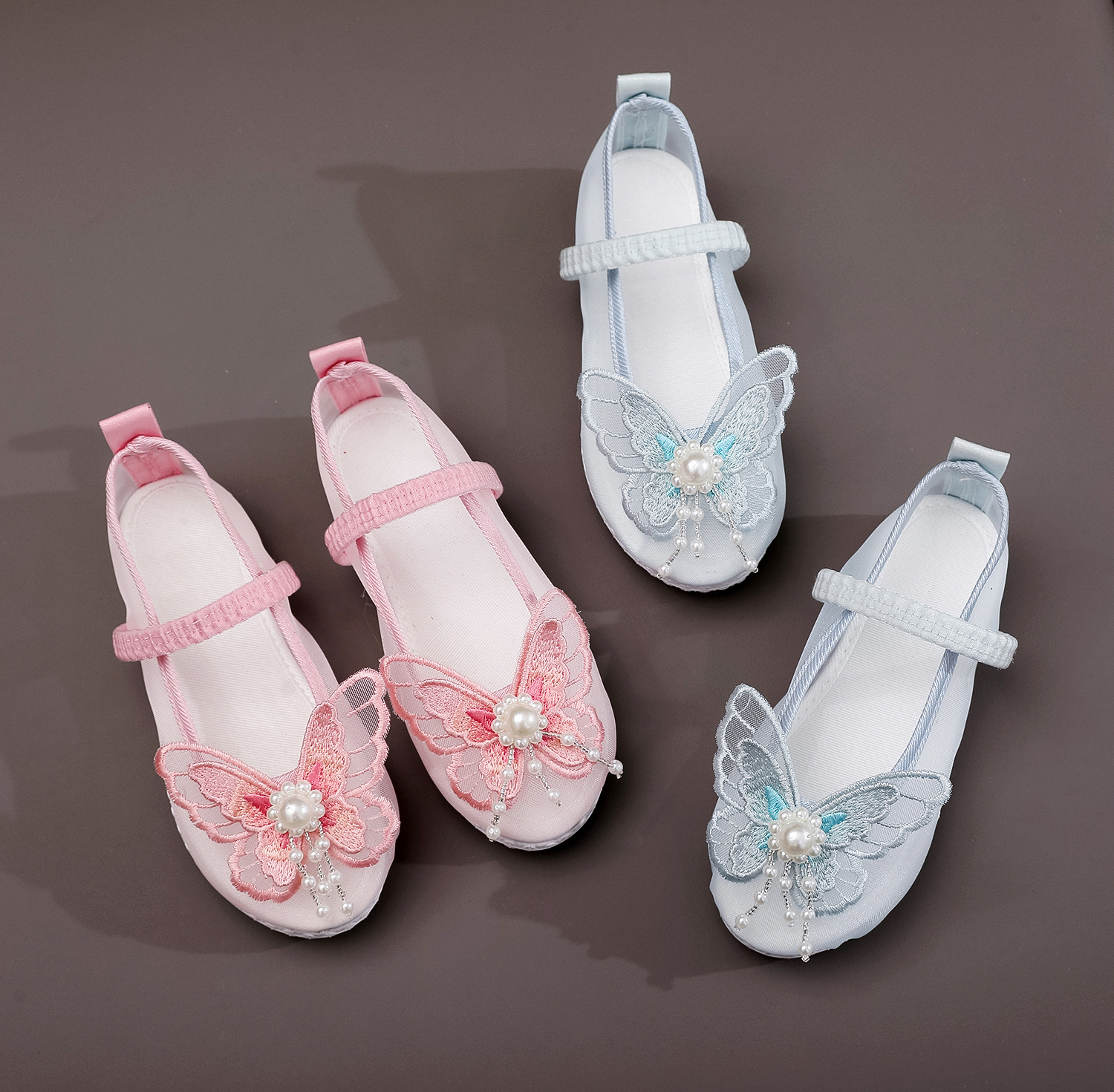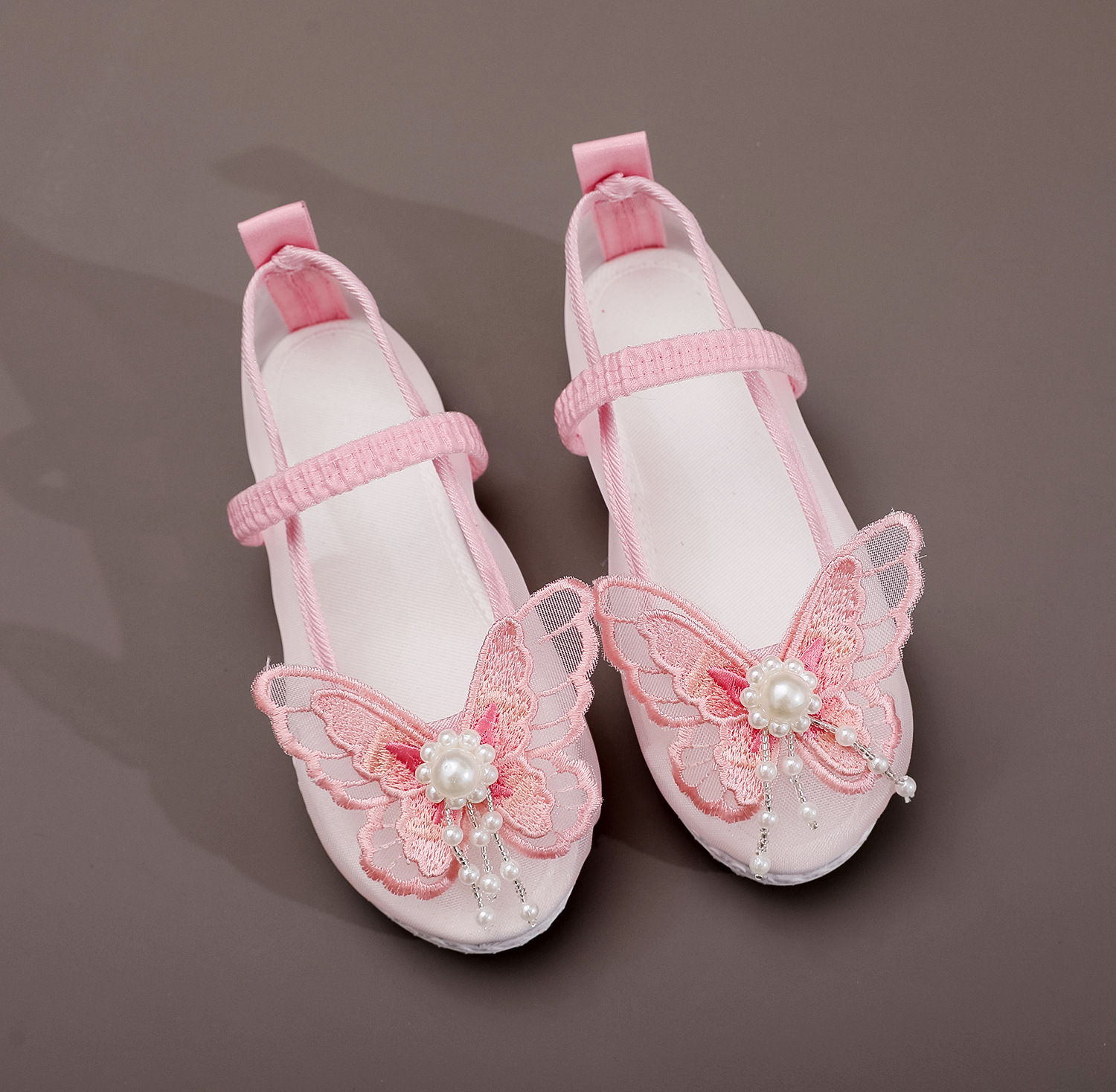 漢服の刺繍靴の女の子の網の民族の風の時代の刺繍の小さい蝶の靴の子供のダンスの靴の子供の靴
