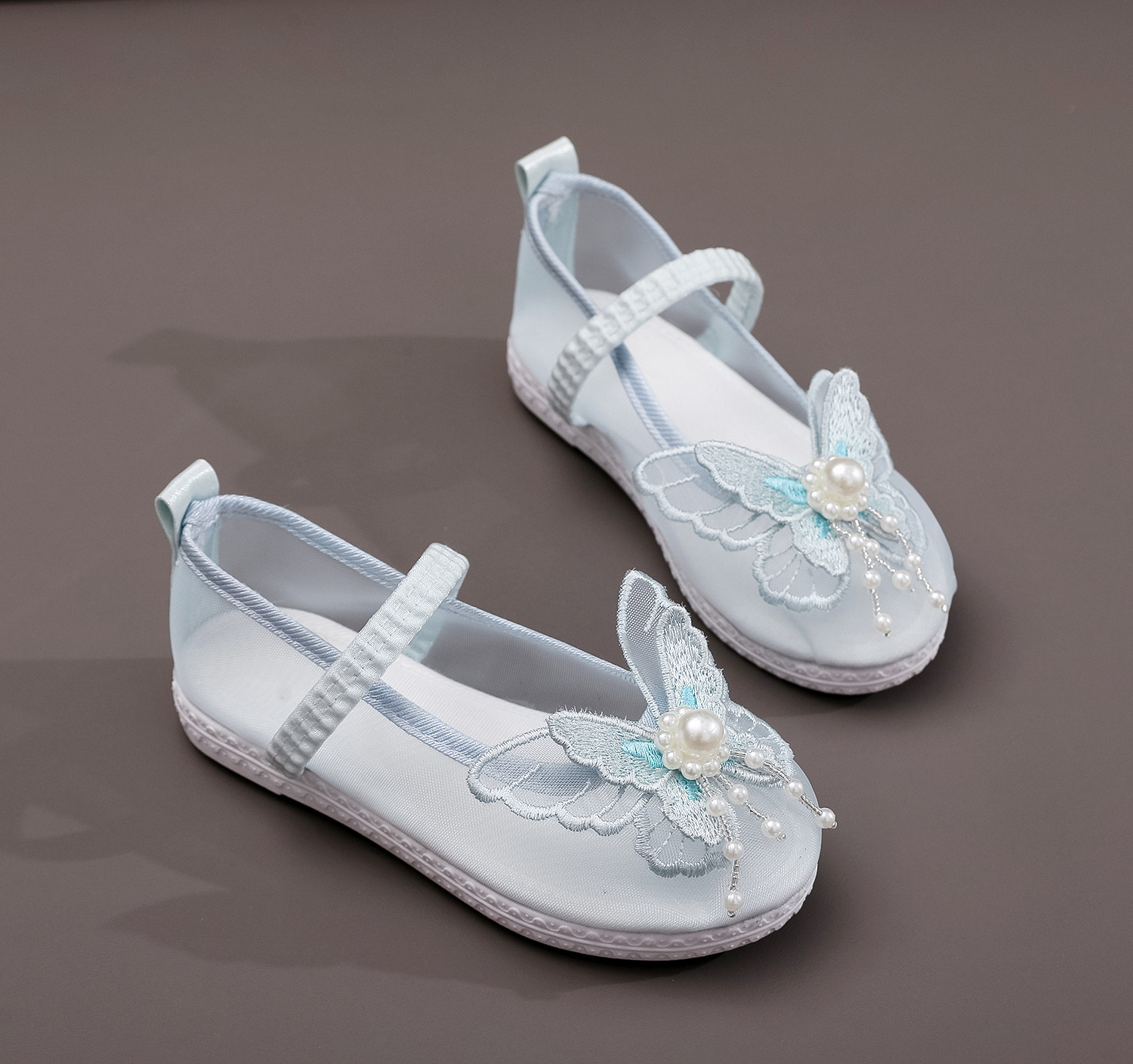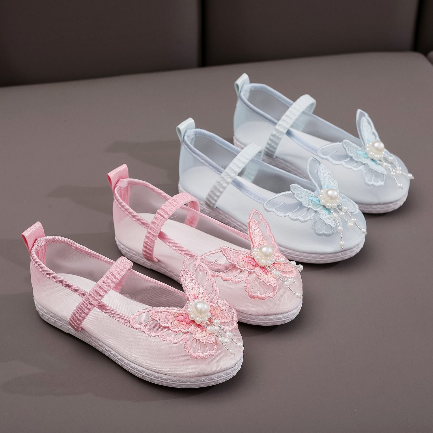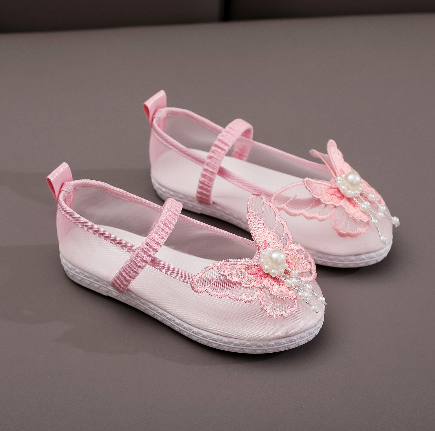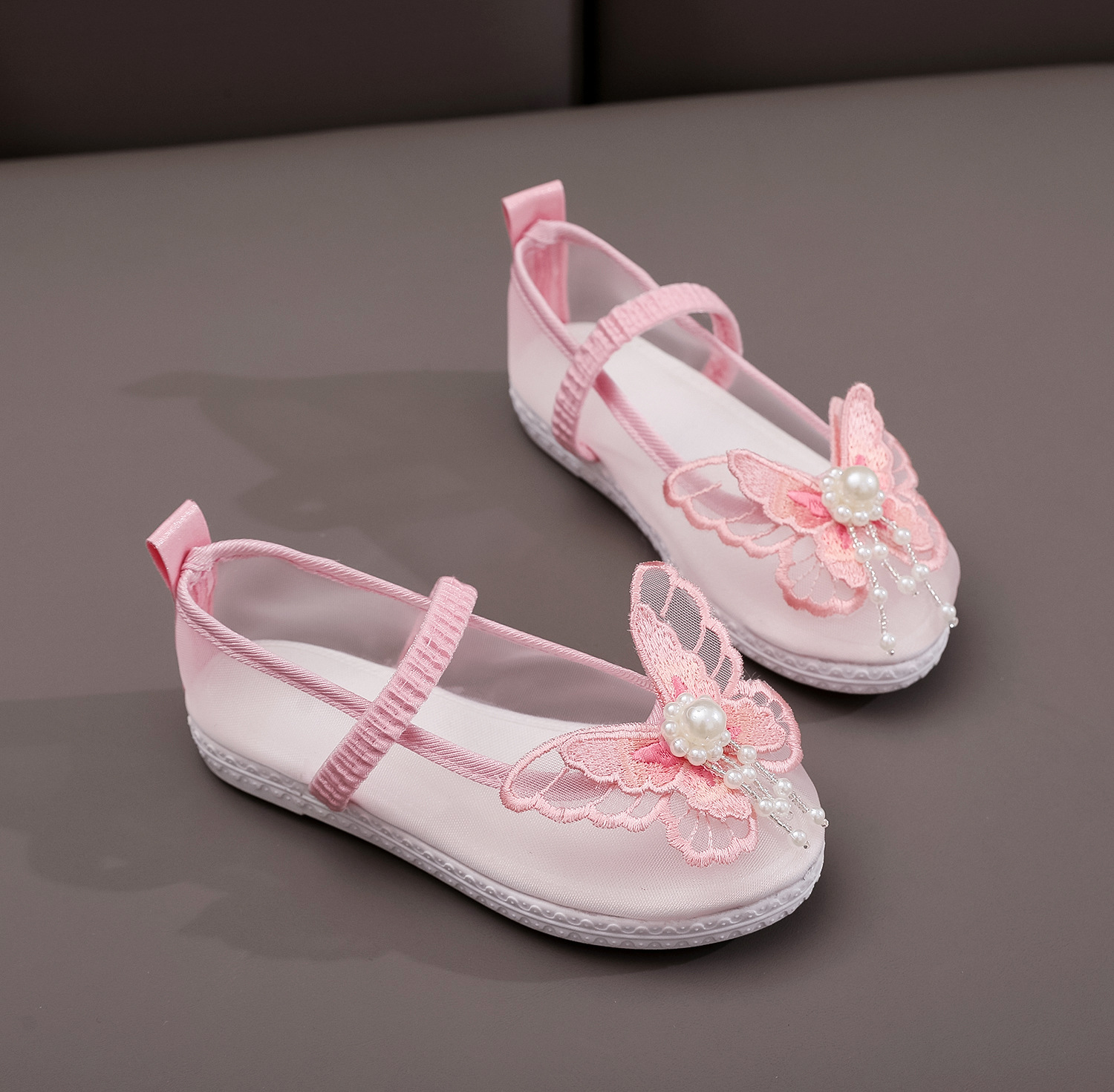 漢服の刺繍靴の女の子の網の民族の風の時代の刺繍の小さい蝶の靴の子供のダンスの靴の子供の靴