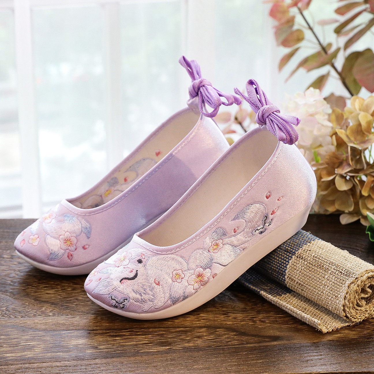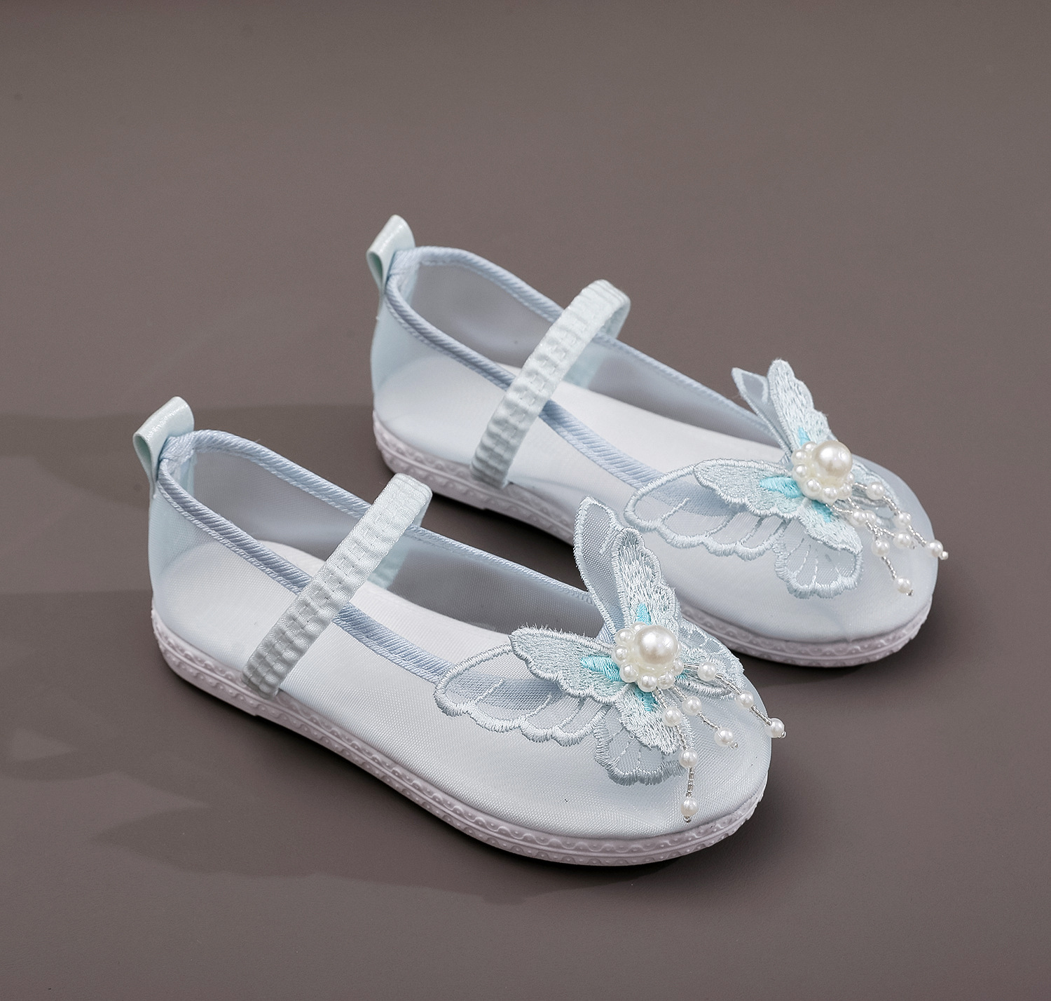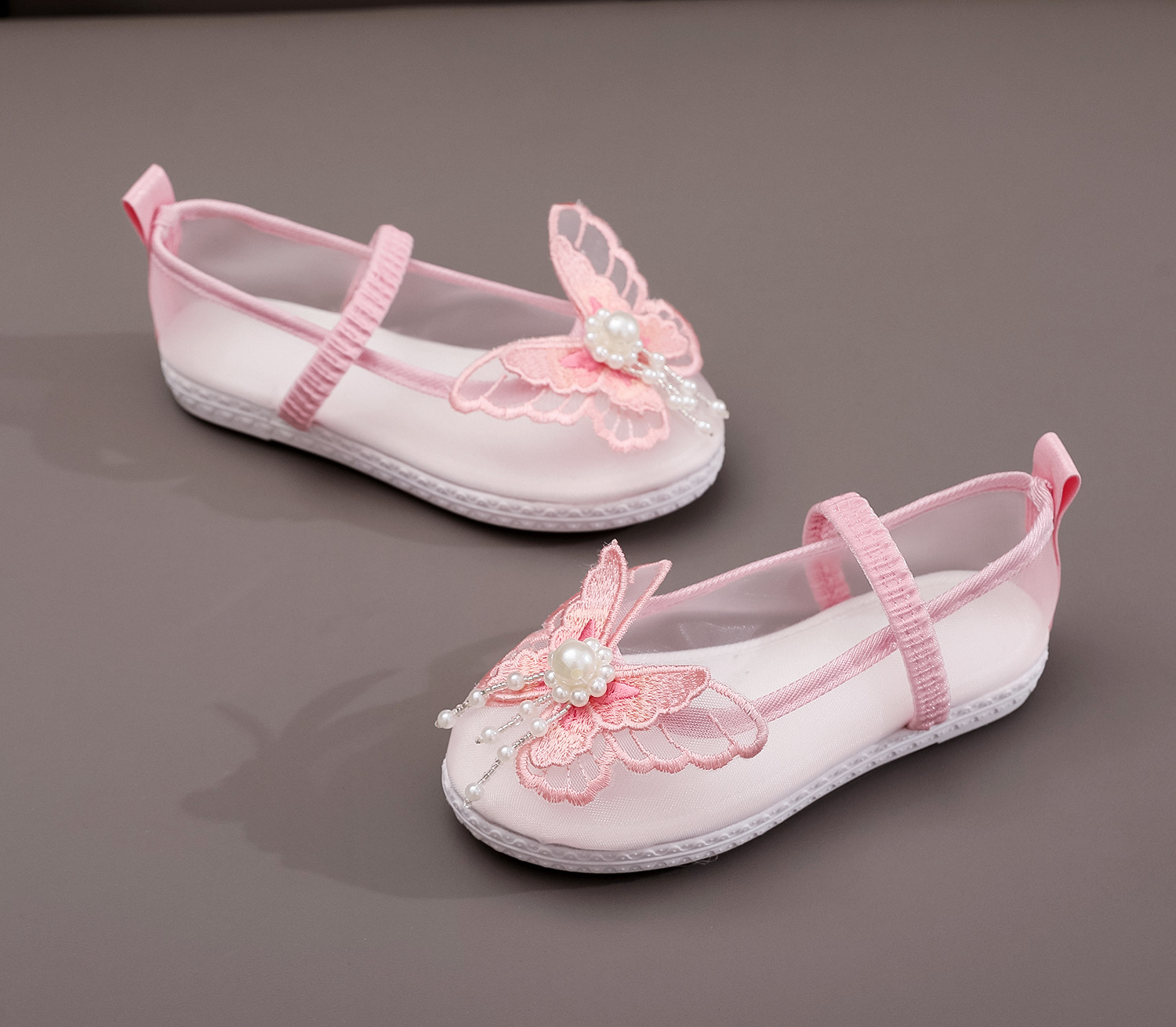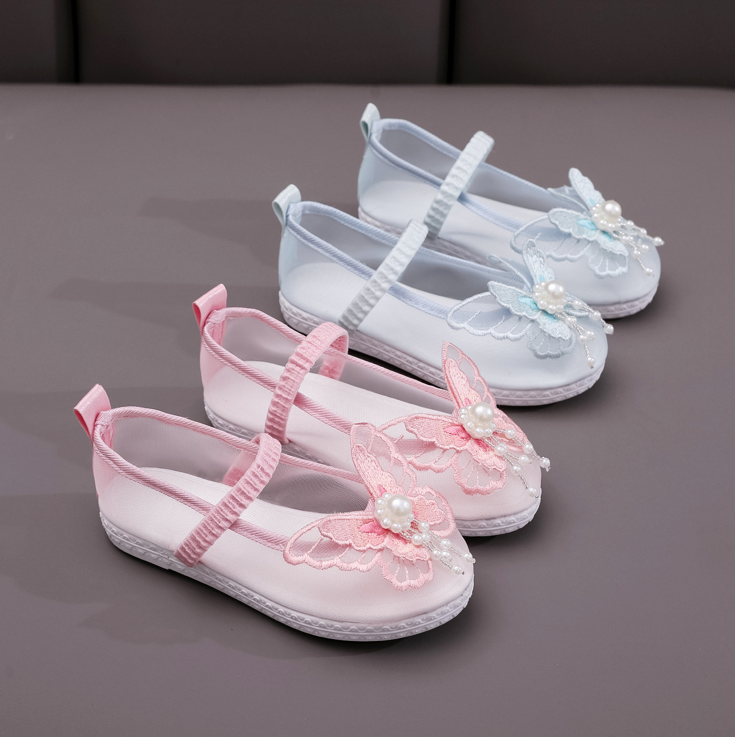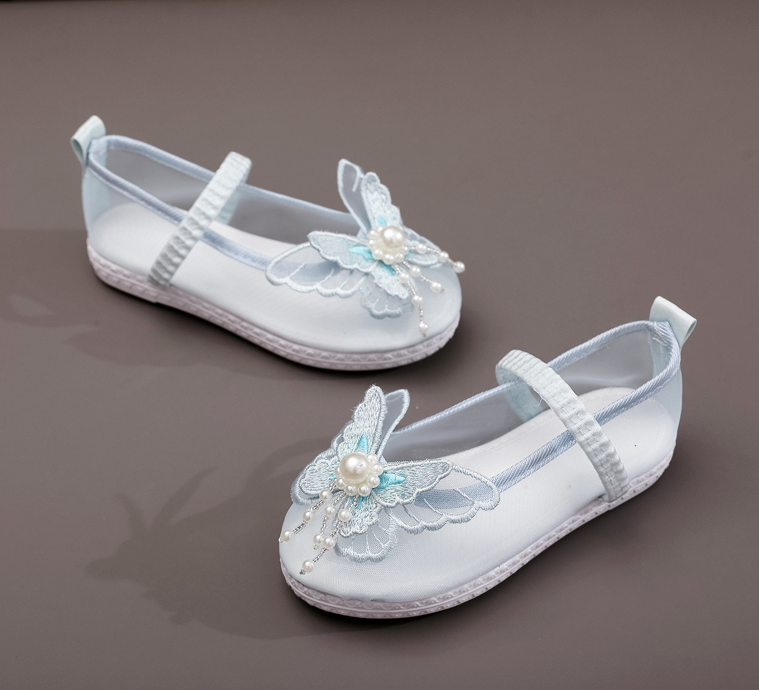 漢服の刺繍靴の女の子の網の民族の風の時代の刺繍の小さい蝶の靴の子供のダンスの靴の子供の靴