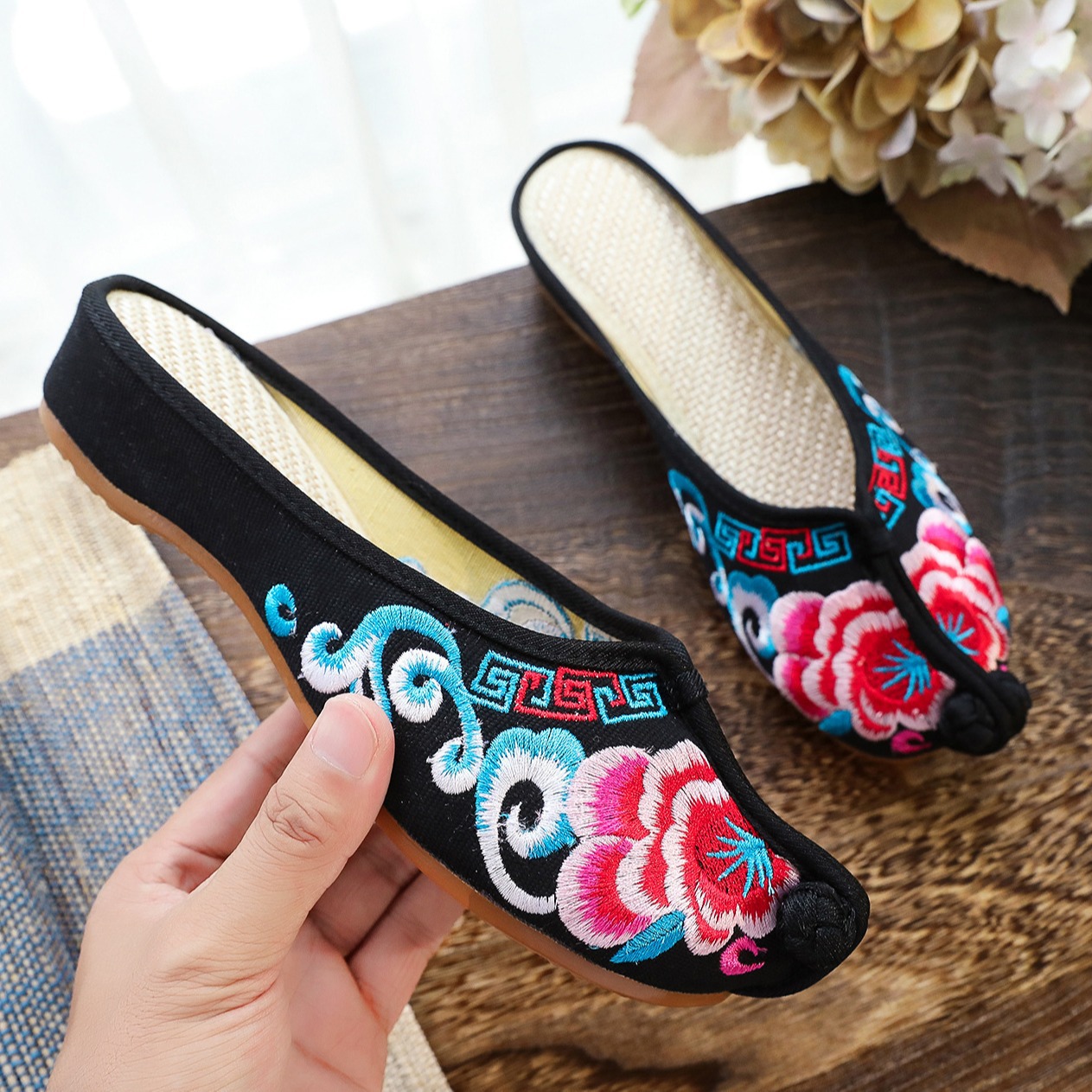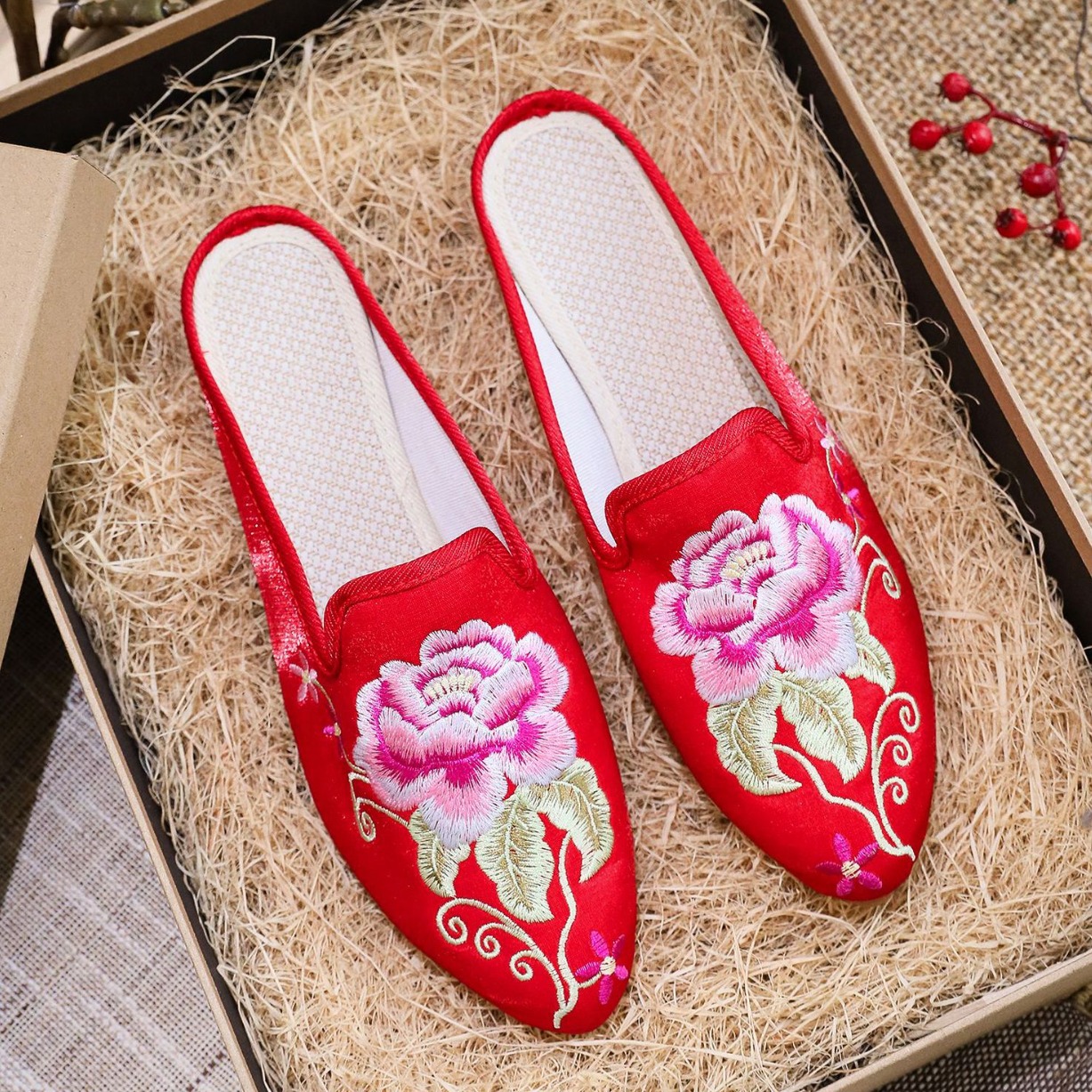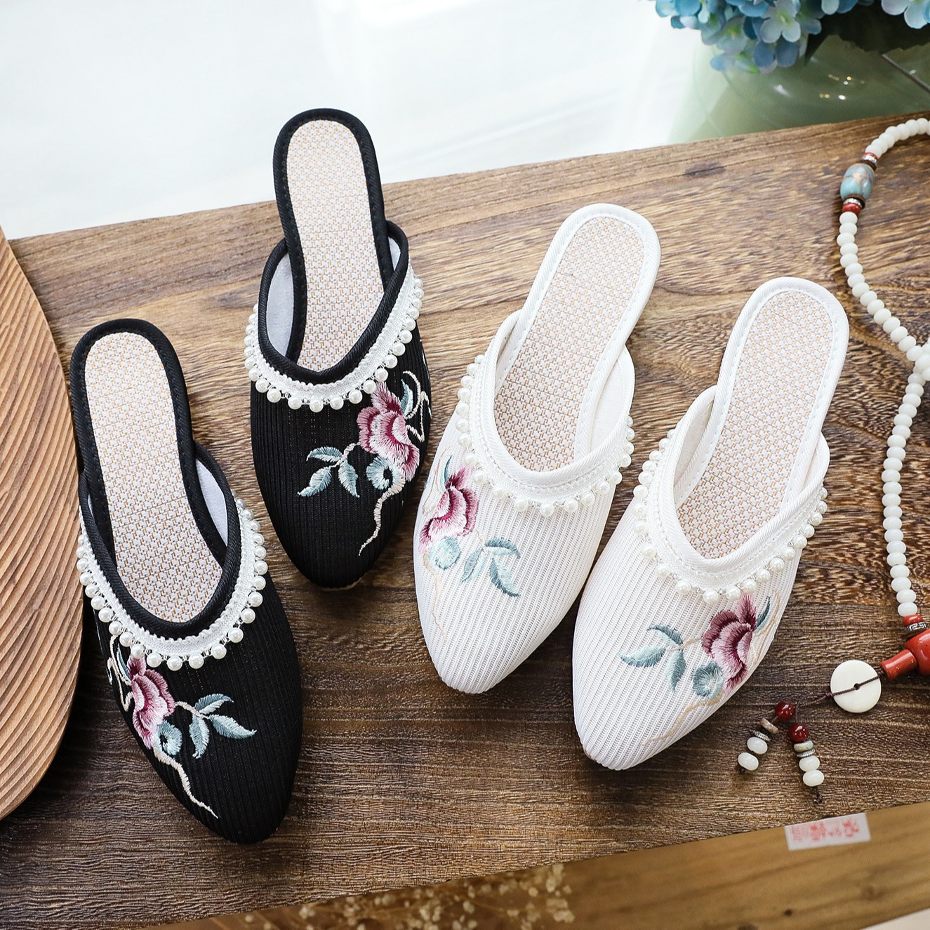 スリッパミュラースリッパ刺繍布靴女性サンダル