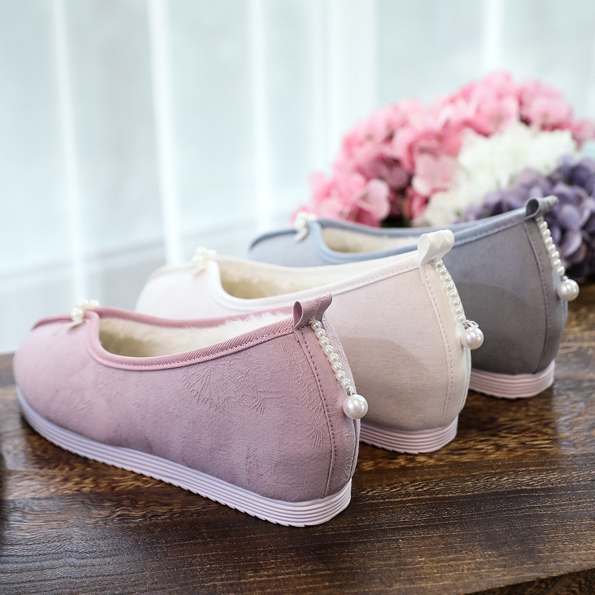 ベルベットの中に秋冬綿靴の漢服靴の純色ジャカード綿布靴の中に坂と女性靴が高くなっている