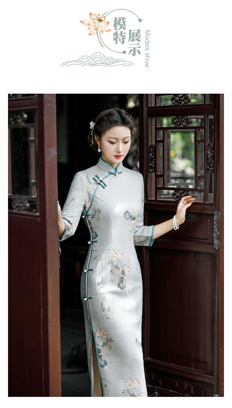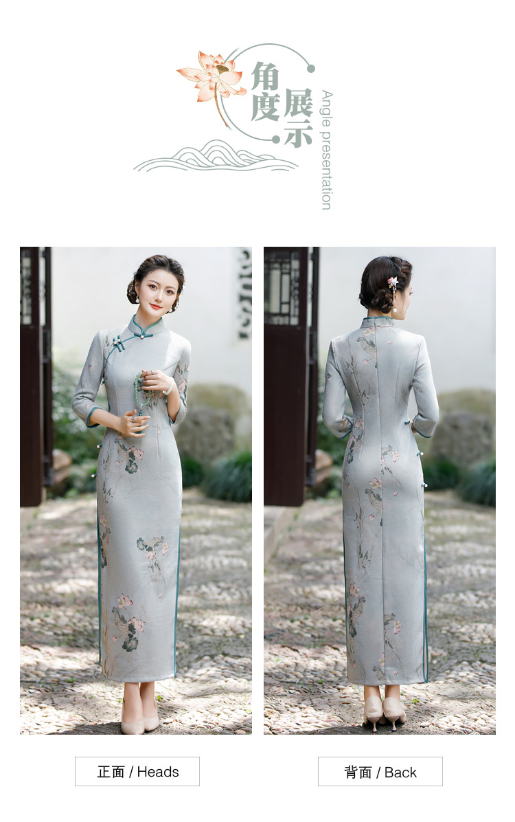 長いチャイナドレス中国風改良版日常復古ショーの若いタイプの古い上海の高級ママワンピース