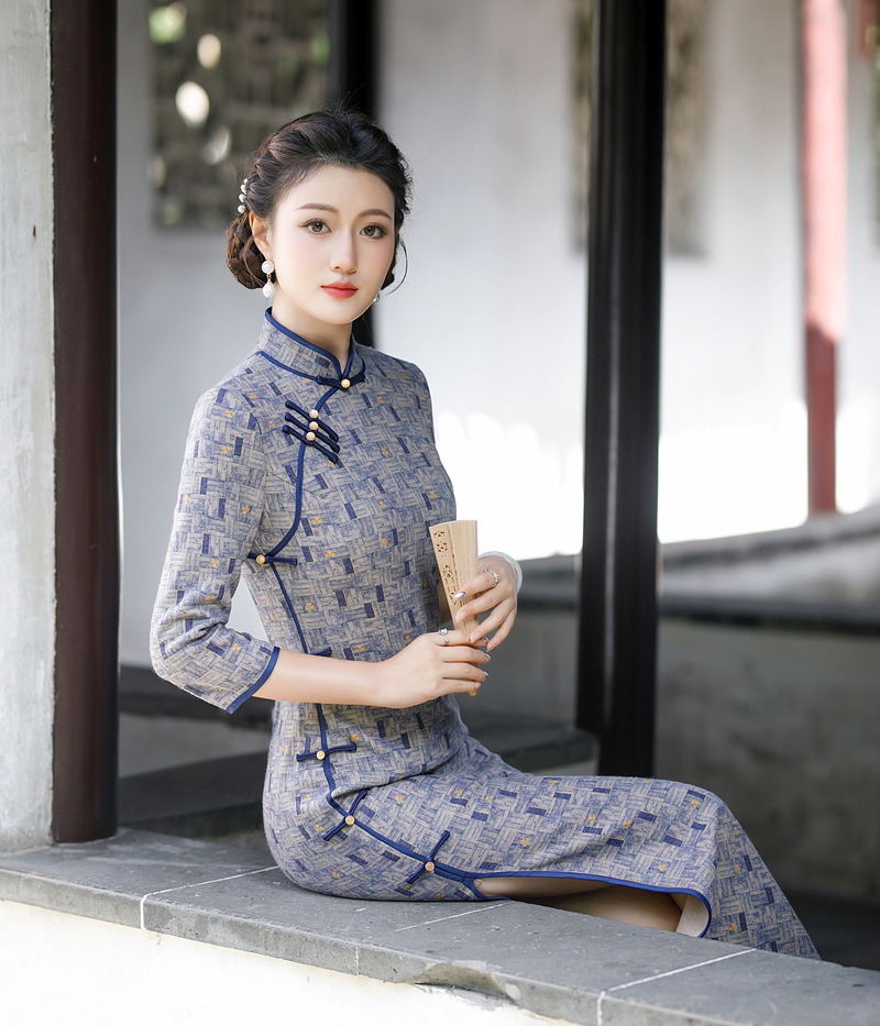 Chenxi 2025 春の新作チャイナドレス中国風改良されたファッションロング七分袖蘇州チャイナドレス