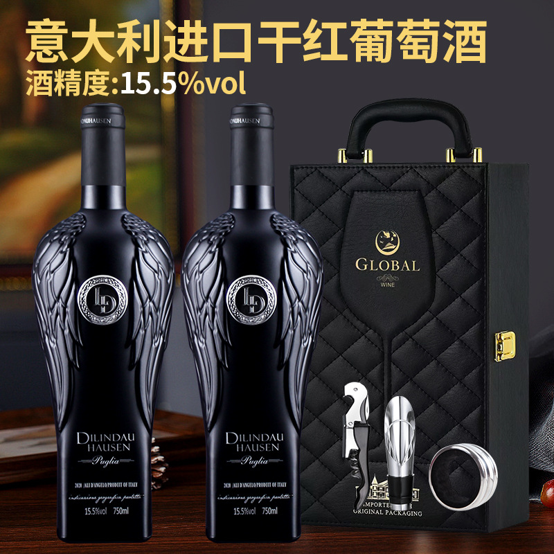 意大利进口红酒15.5度桑娇维赛林道豪森天使羽翼干红葡萄酒礼盒装