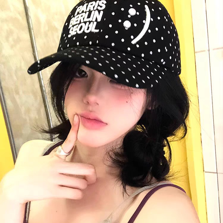 韓国のニッチなスマイリーフェイス水玉模様の星文字野球帽、頭囲が大きい女性向け、カジュアルで多用途な男性向けのひさしキャップ