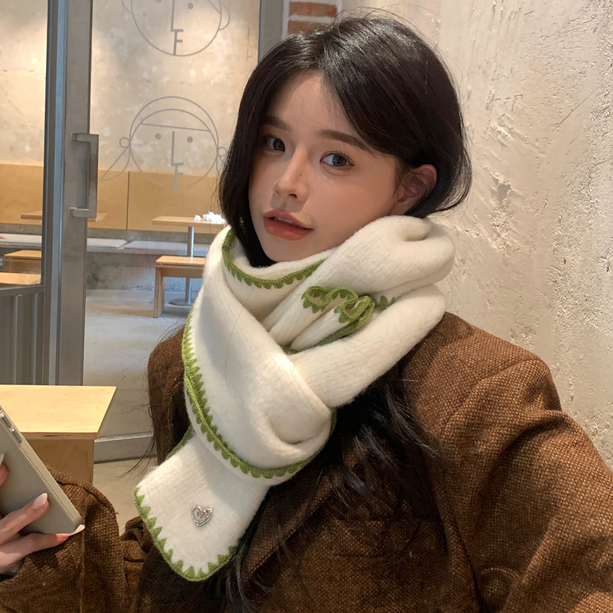 2024秋冬新作マフラー女性高級感保温百合韓国風ストール純色ロック雰囲気感マフラー