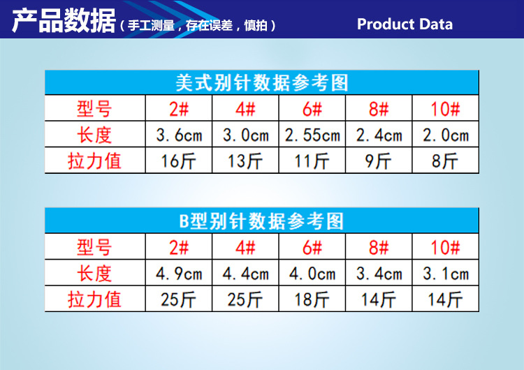 50枚套装:2 4 6 8 10号各10枚,盒子尺寸9.7*4.8*1.6cm,重量约60g