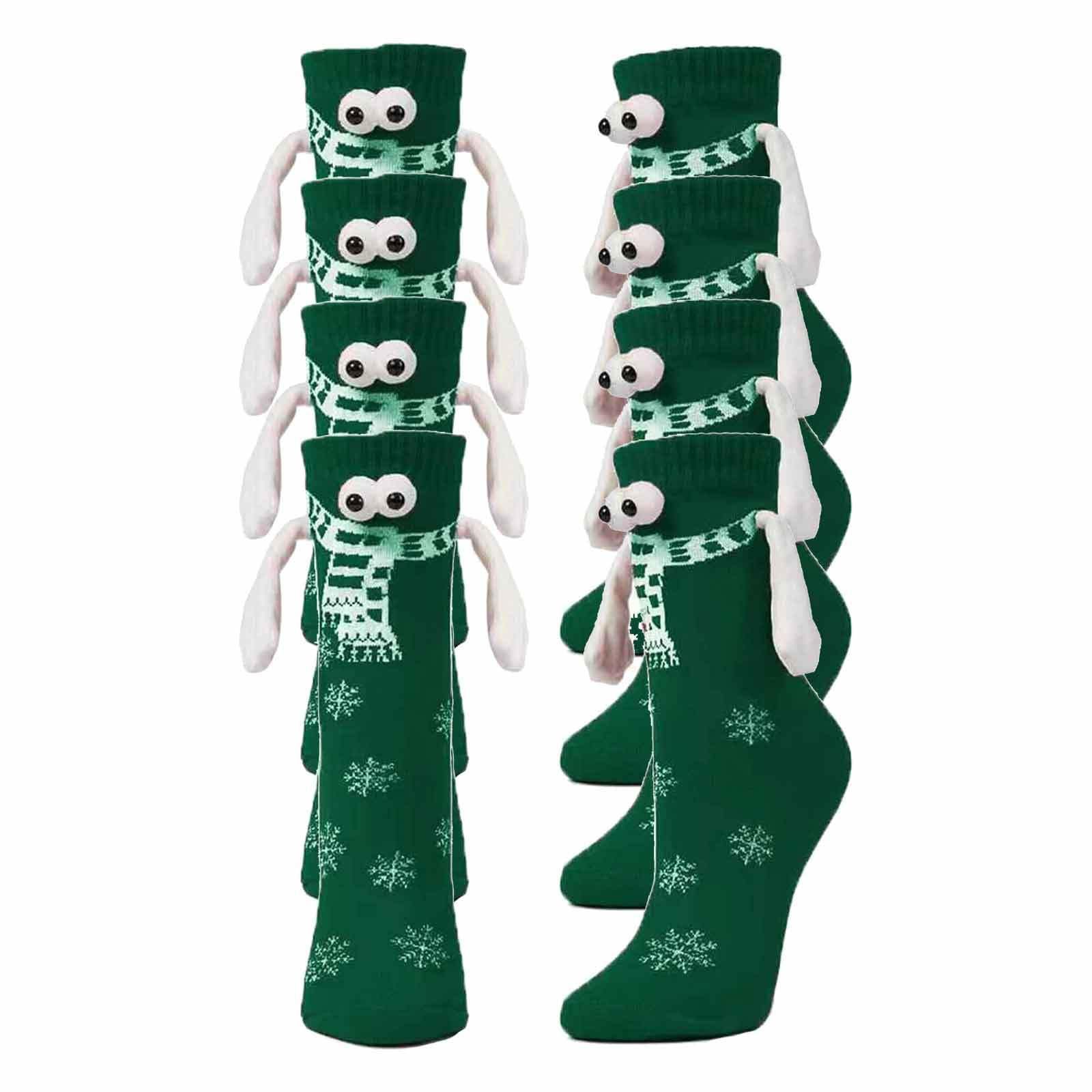 跨境圣诞牵手袜子磁吸搞怪3D眼睛中筒袜个性透气个性百搭情侣袜子