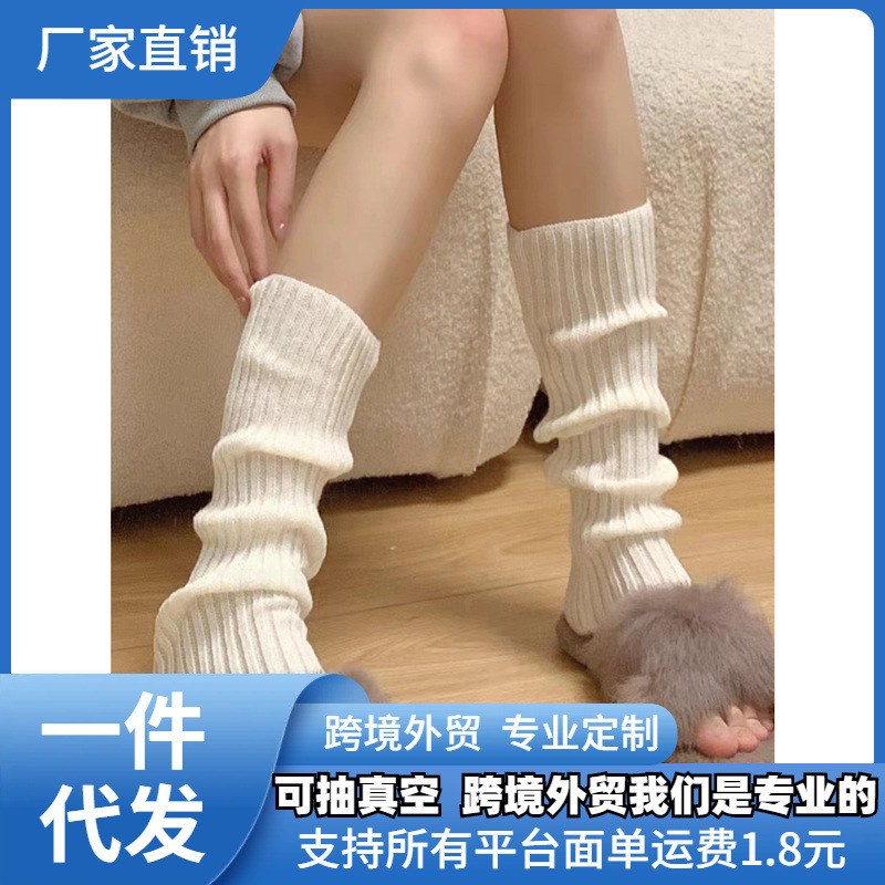純色ニット靴下カバー秋冬保温中筒靴下y 2k原宿風ギャル