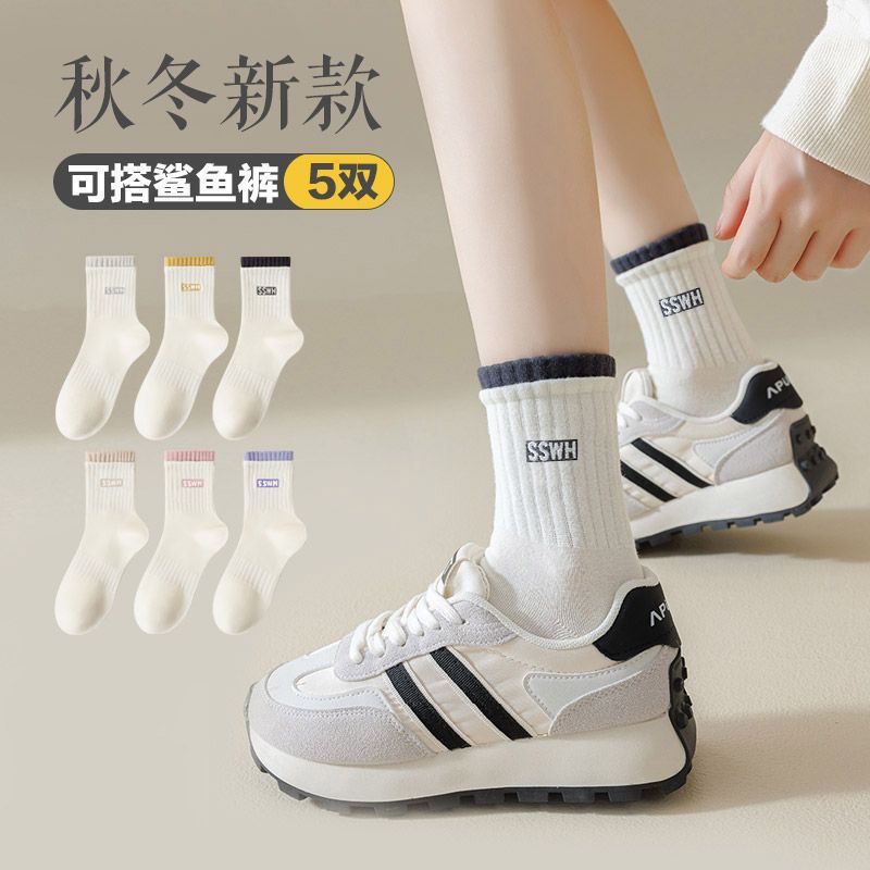白い靴下の女性秋冬タイプの中筒靴下防臭とサメのズボンの長い筒のスポーツ靴下の秋のストッキングの女性ins潮