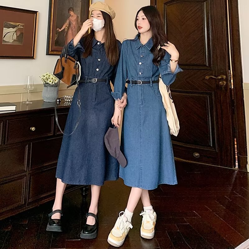 大きいサイズの婦人服の太ったmmの初秋は肉を隠してやせているデニムのワンピースの気質のレトロなデザイン感があります。