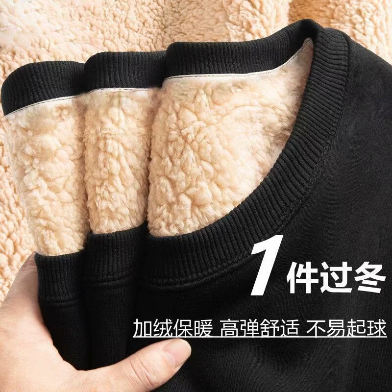 男士卫衣冬季加绒超厚羊羔绒休闲运动百搭圆领长袖上衣男