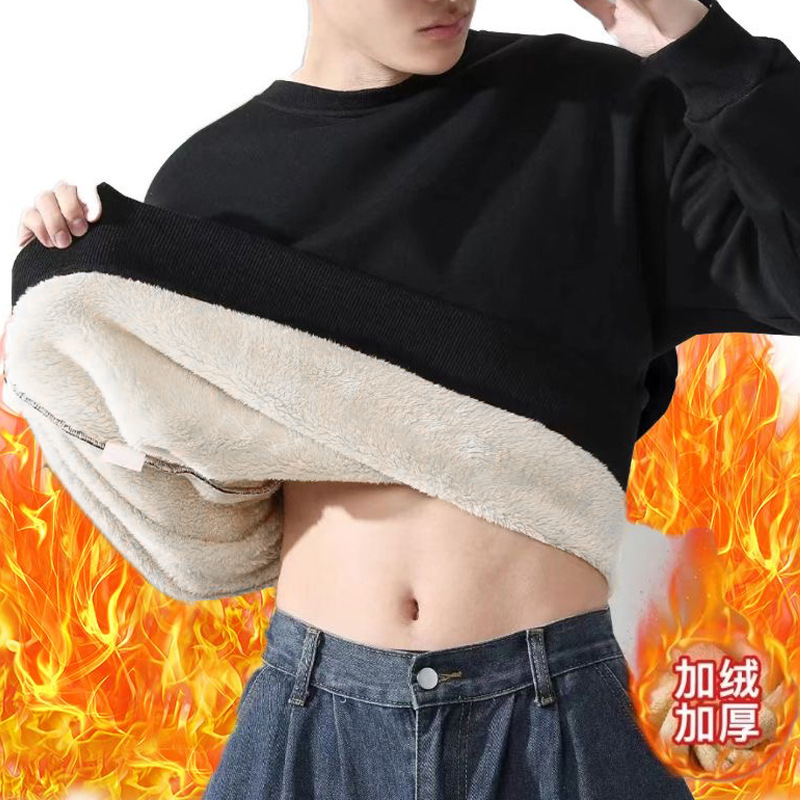 加绒加厚羊驼绒卫衣T恤男女同款冬季保暖上衣防寒一件过冬百搭