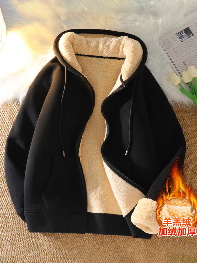 秋冬款加绒加厚卫衣男加厚情侣款学生情侣衣服羊羔绒保暖圆领外套