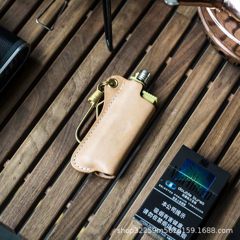 日本SOTO伸缩打火机皮套户外露营手工制作复古牛皮保护套含铜挂扣