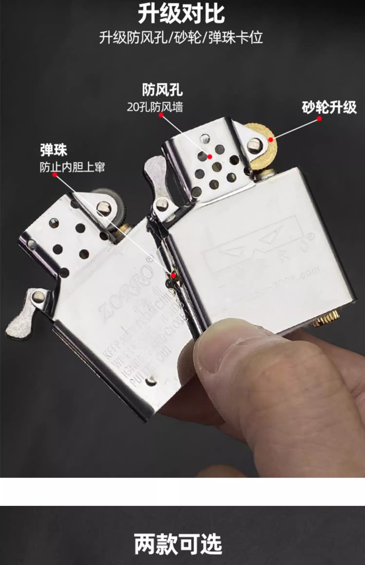 ZORRO 純正 ゾロ スチールボール 第二世代 カバーインナーライナー 高耐久性 完全密閉ムーブメント 防風ライターアクセサリー