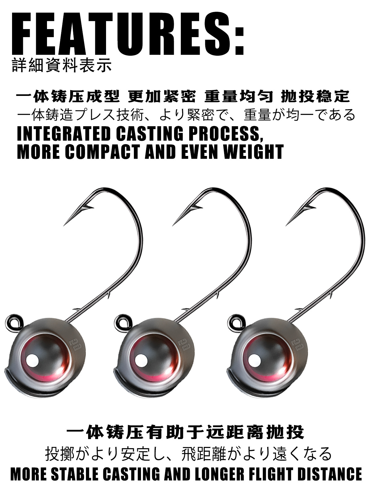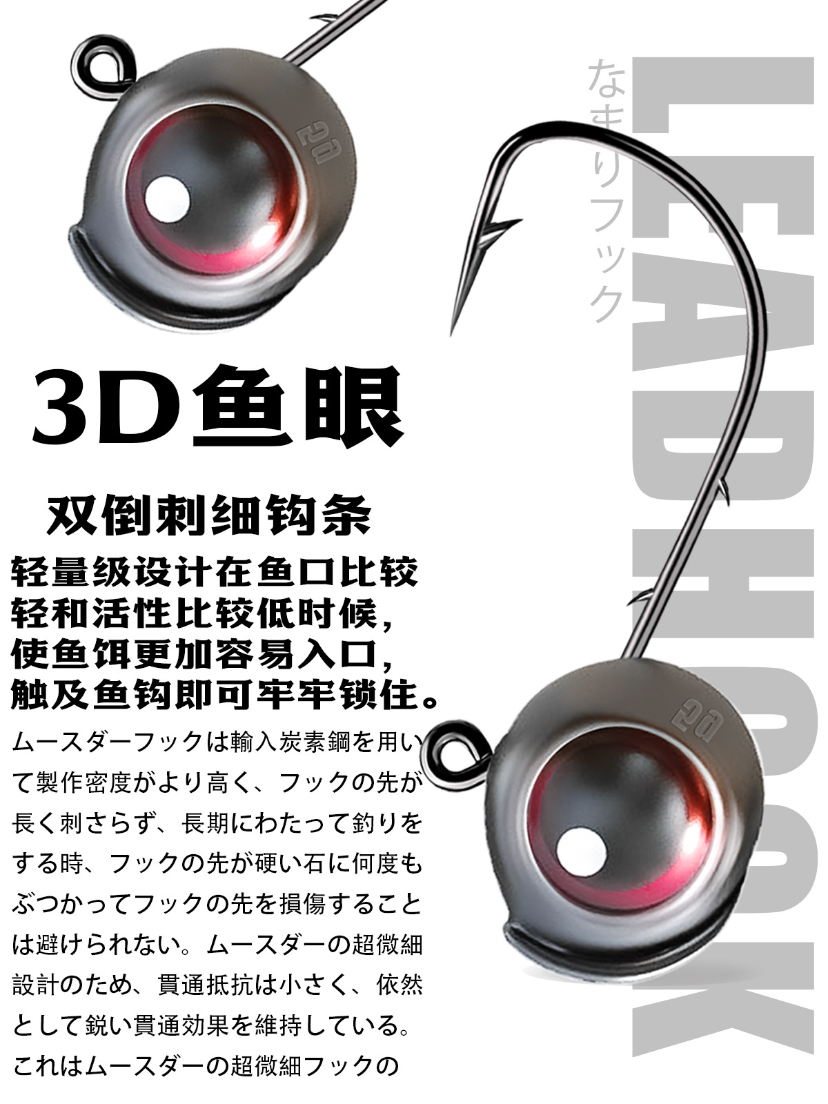 クロスボーダーマイクロウェイト鉛ヘッドフック3D夜光魚眼模擬魚頭1g1.8g3.5gルアー釣り用鉛ヘッドフック
