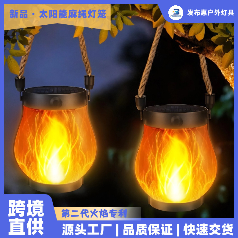 国境を越えた新しいソーラーフレームライト麻ロープランタン中庭の装飾屋外防水サポートUSB充電