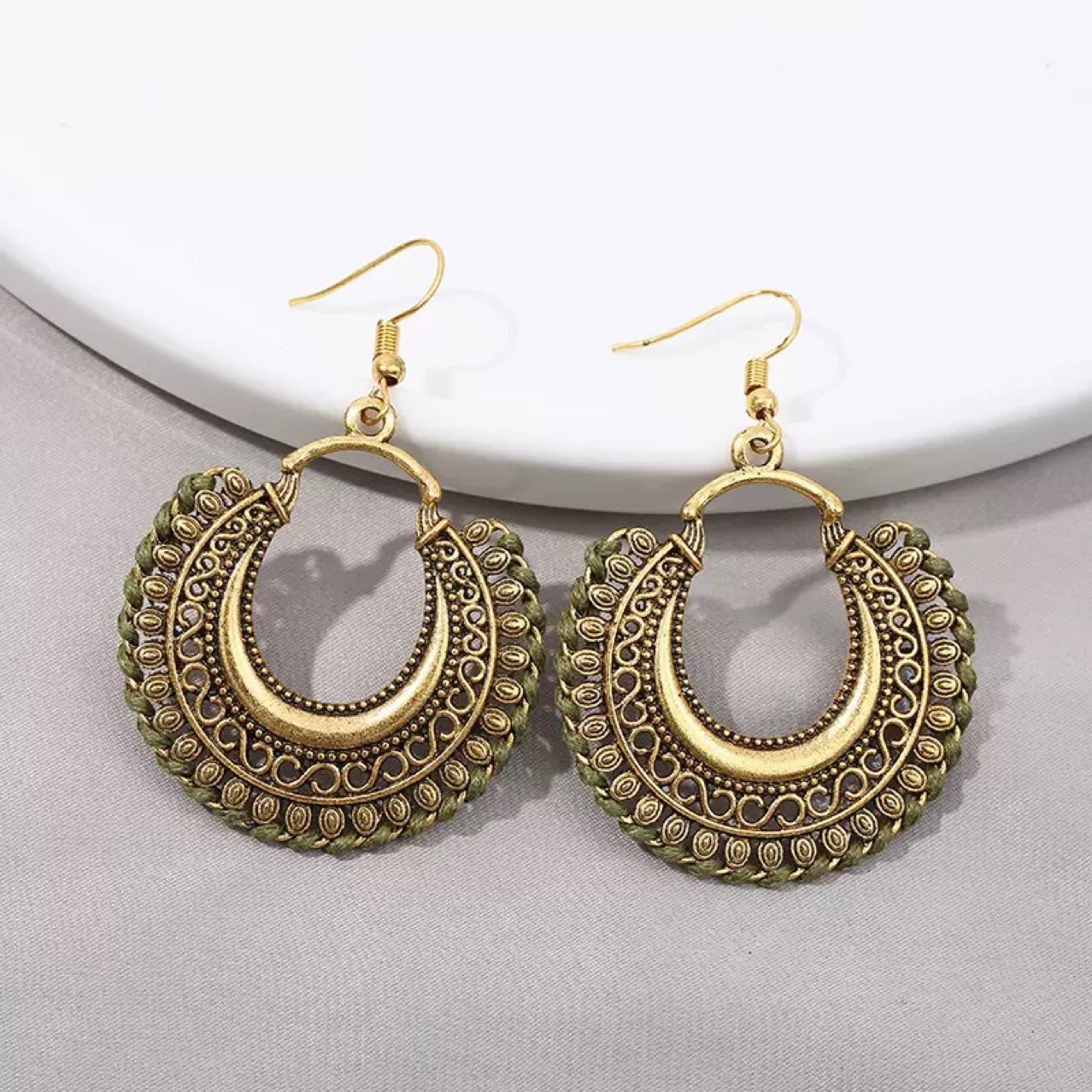 波西米亚雕花长款流苏耳环新款民族风耳钩气质轻奢耳饰外贸跨境