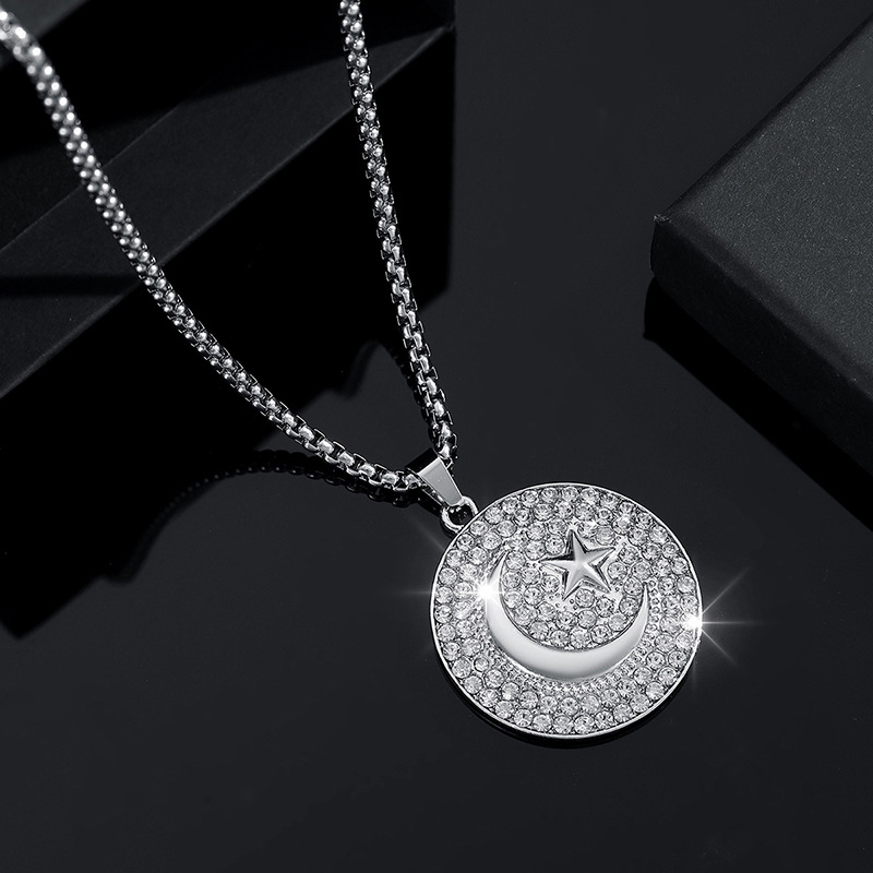 时尚欧美中性风华丽个性嘻哈圆形月亮星星符号形男女通用吊坠项链