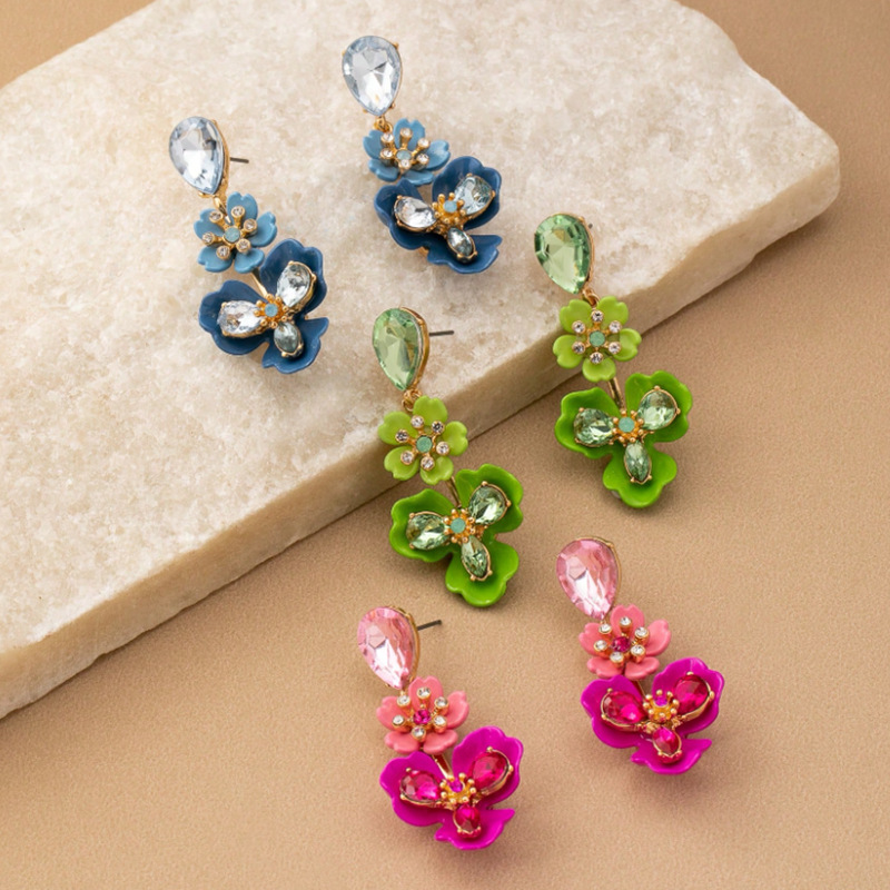 韓国版の甘くて可愛いキャンディー色の花のイヤリングが流行しています。