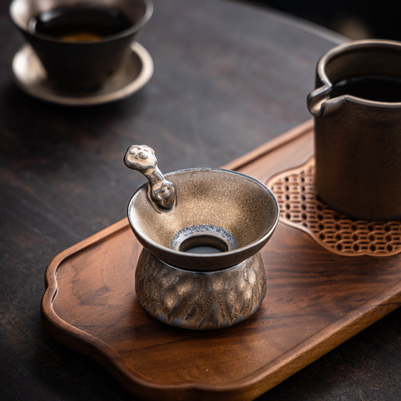 鎏金铁锈釉茶漏泡茶滤茶器茶叶过滤陶瓷茶隔离茶滤茶具配件公道杯