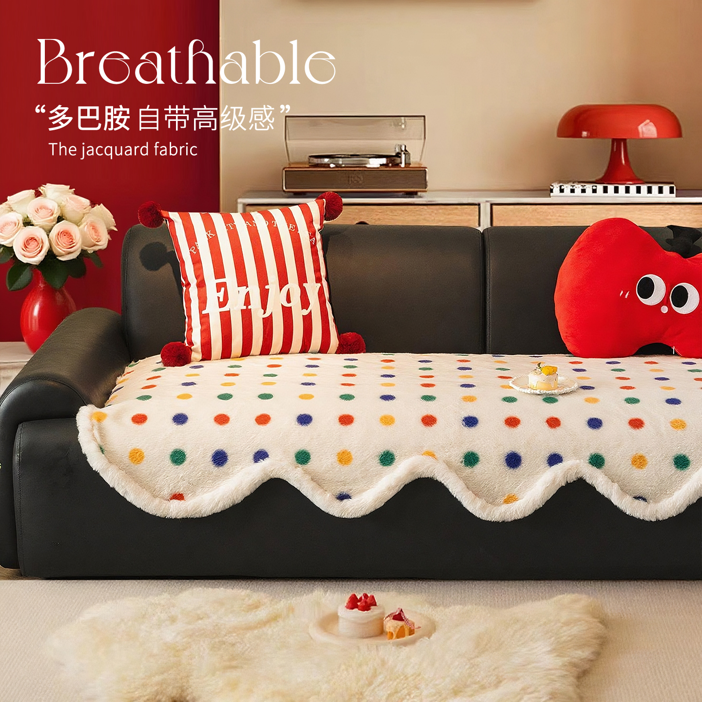 多巴胺波点兔毛绒异形沙发垫秋冬季2025新款高级感沙发坐垫子防滑