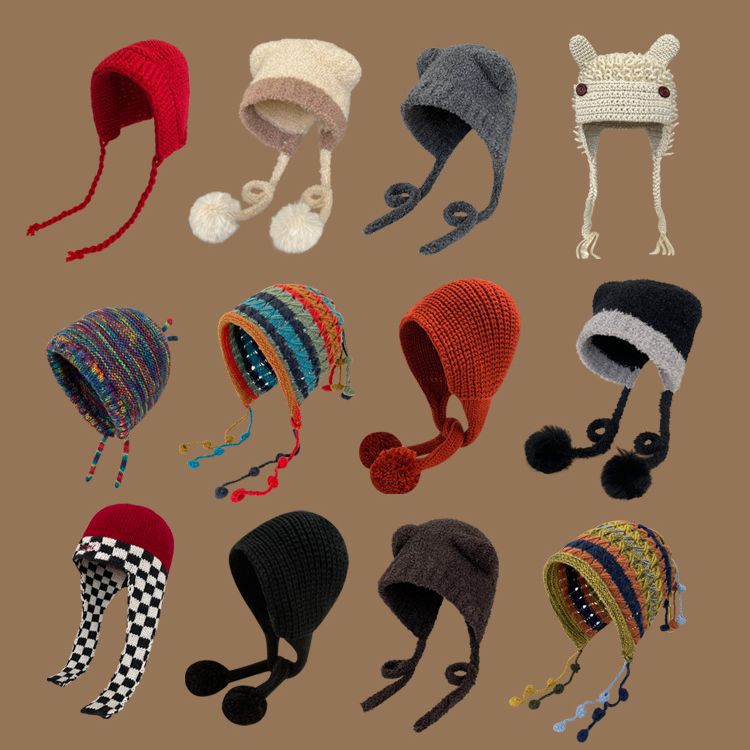 手編みの長いひもの柔らかい妹の毛糸の帽子の女性の冬の厚い保温の耳のニットの雷鋒の帽子の韓国版の潮