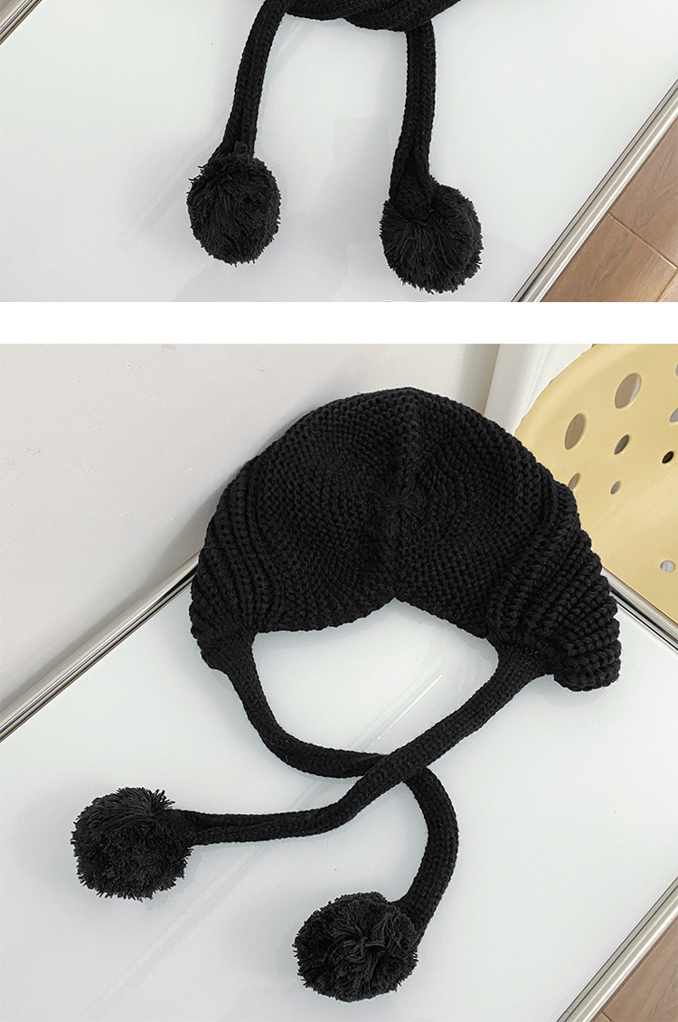 黒い長いお下げの帽子の双球の毛糸の帽子の雷鋒の帽子の子供の秋冬の韓国版の耳の保温のニットの帽子