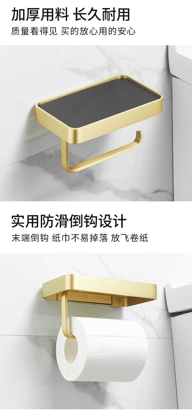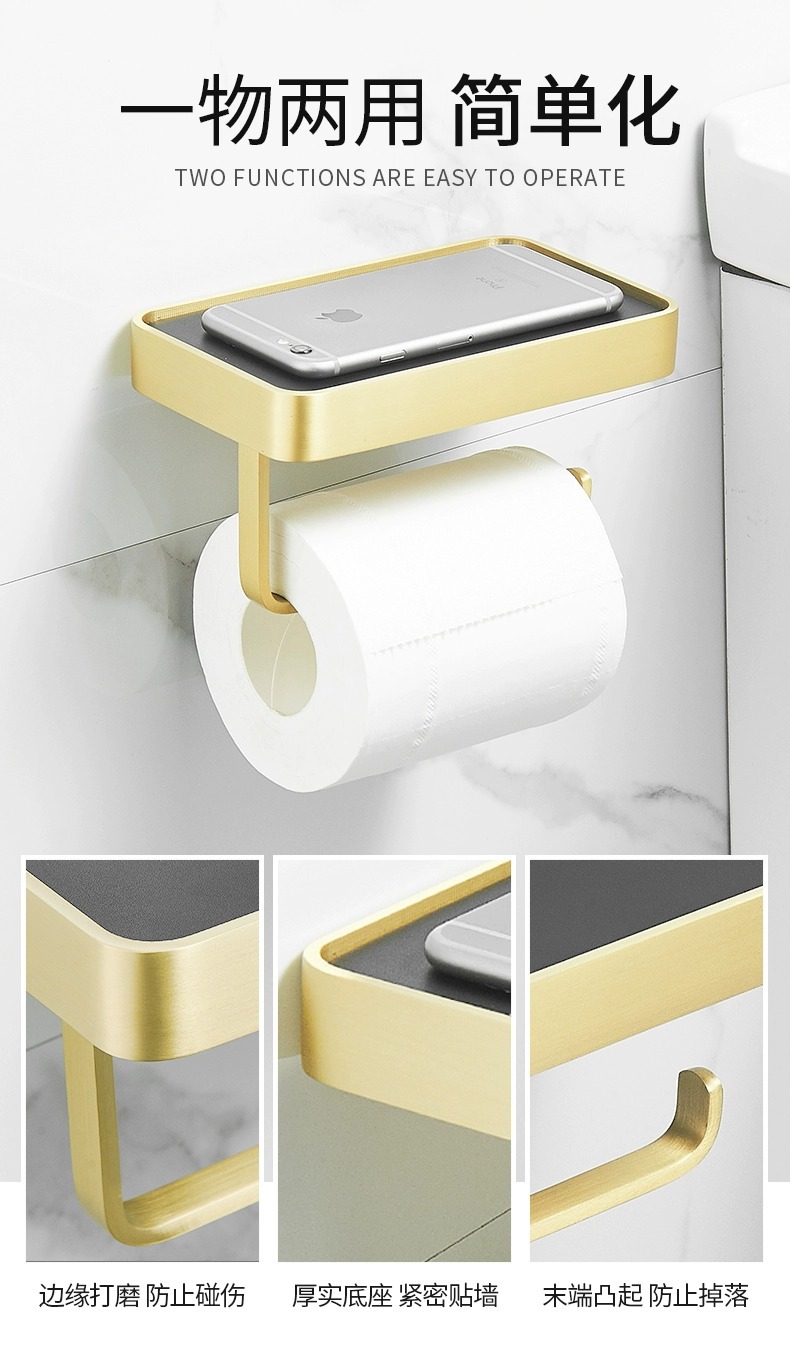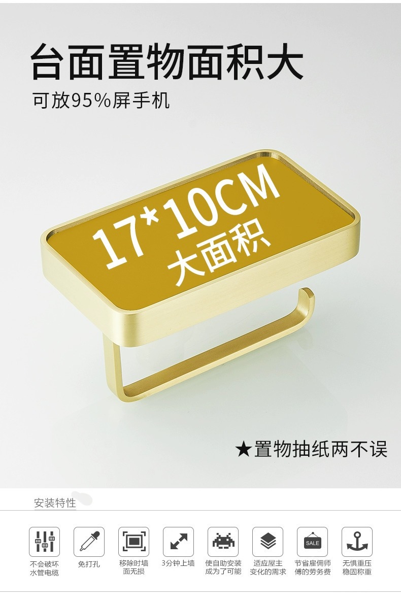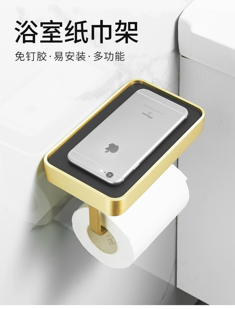 穴を開けないトイレの棚銅材ティッシュボックスホテル大ロール紙携帯電話スタンドティッシュホルダー