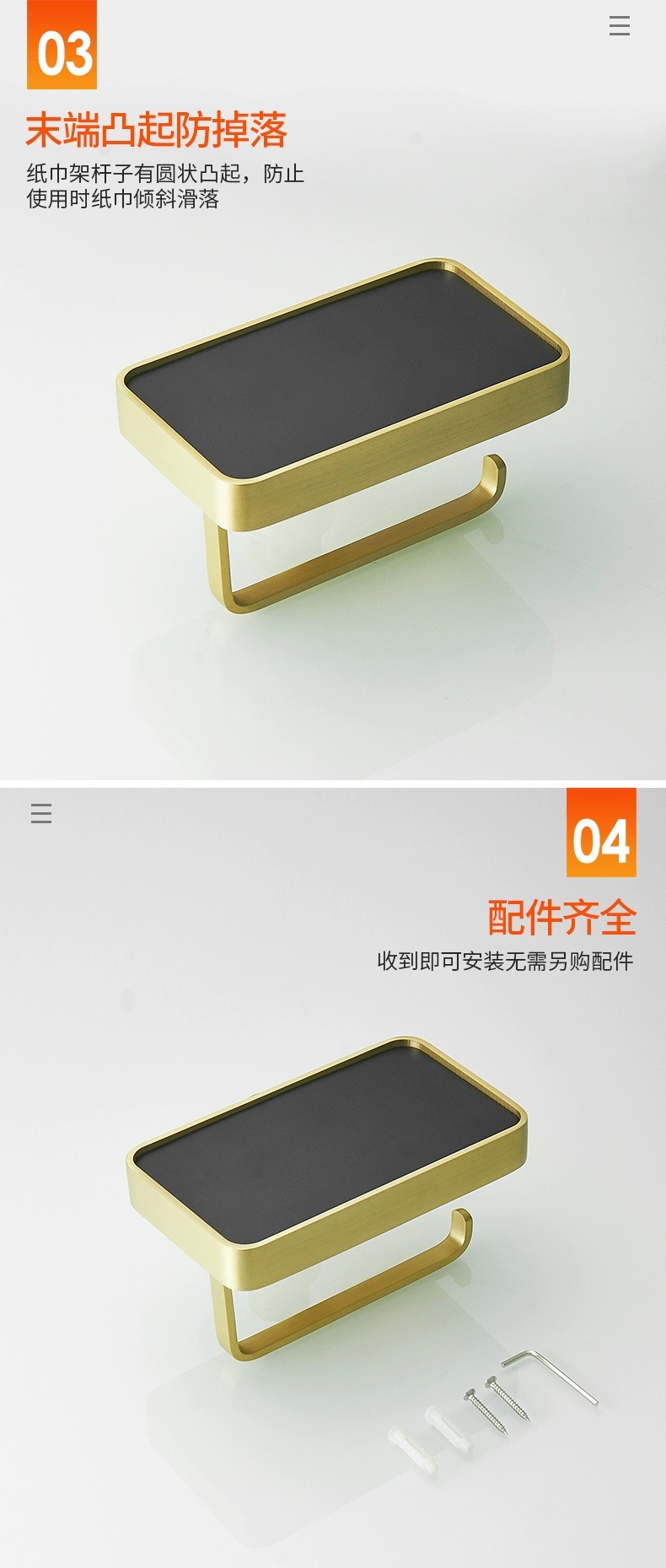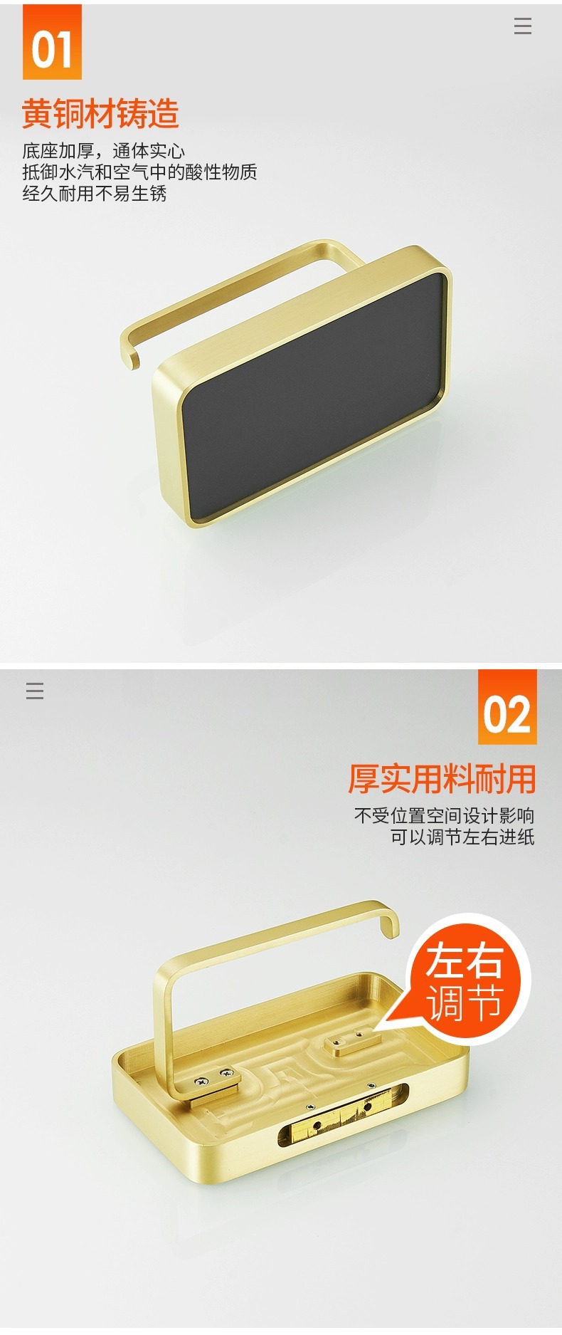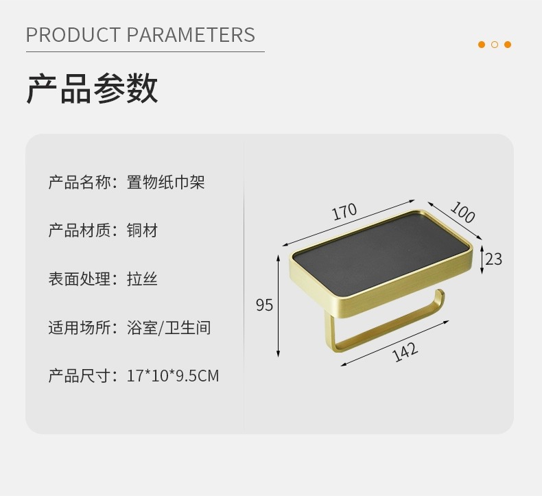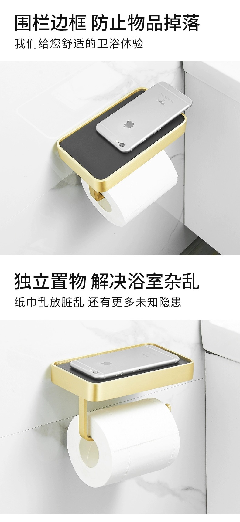 穴を開けないトイレの棚銅材ティッシュボックスホテル大ロール紙携帯電話スタンドティッシュホルダー