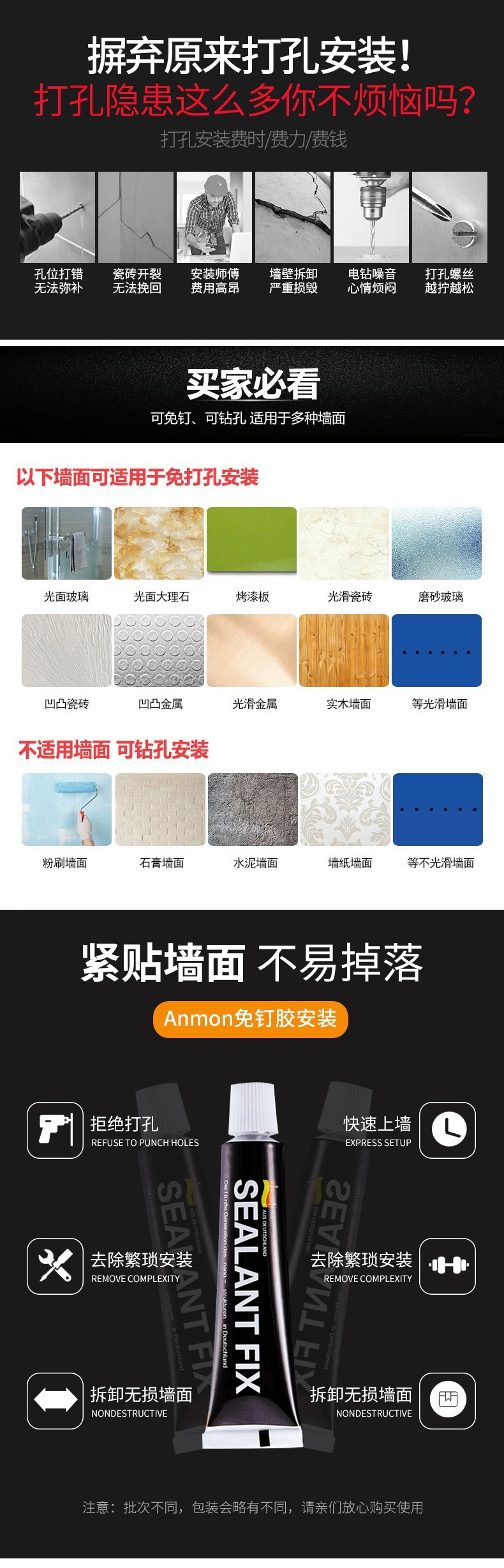 釘なし壁掛け式ホテル浴室キッチン石鹸器壁付き手洗い液入浴剤シャンプープレス石鹸ディスペンサー