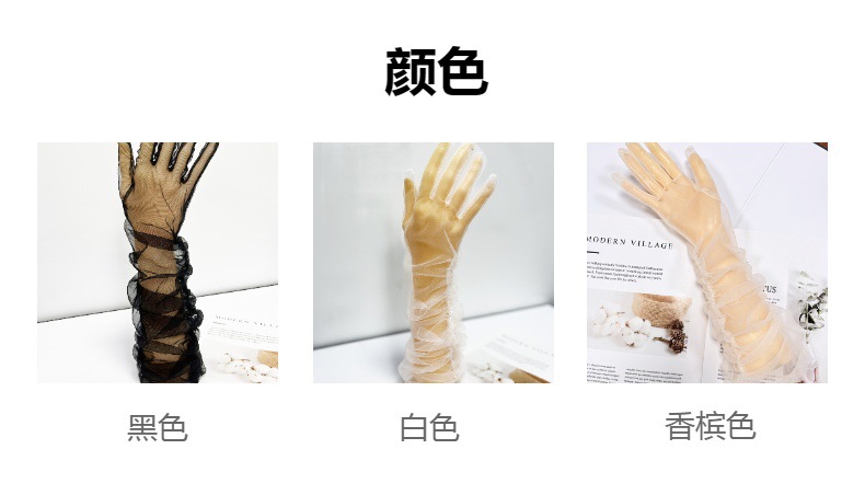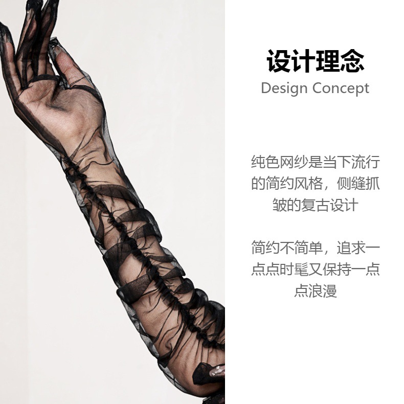 55CM長さ70CM DIY薄手のチュール無地ブライダルウェディングドレス手袋セクシーな黒白ワインレッドメッシュウェディング