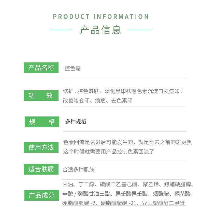 控色霜绿霜代谢霜色素沉着黄褐斑真皮斑溶斑霜祛斑预防反黑氢醌霜