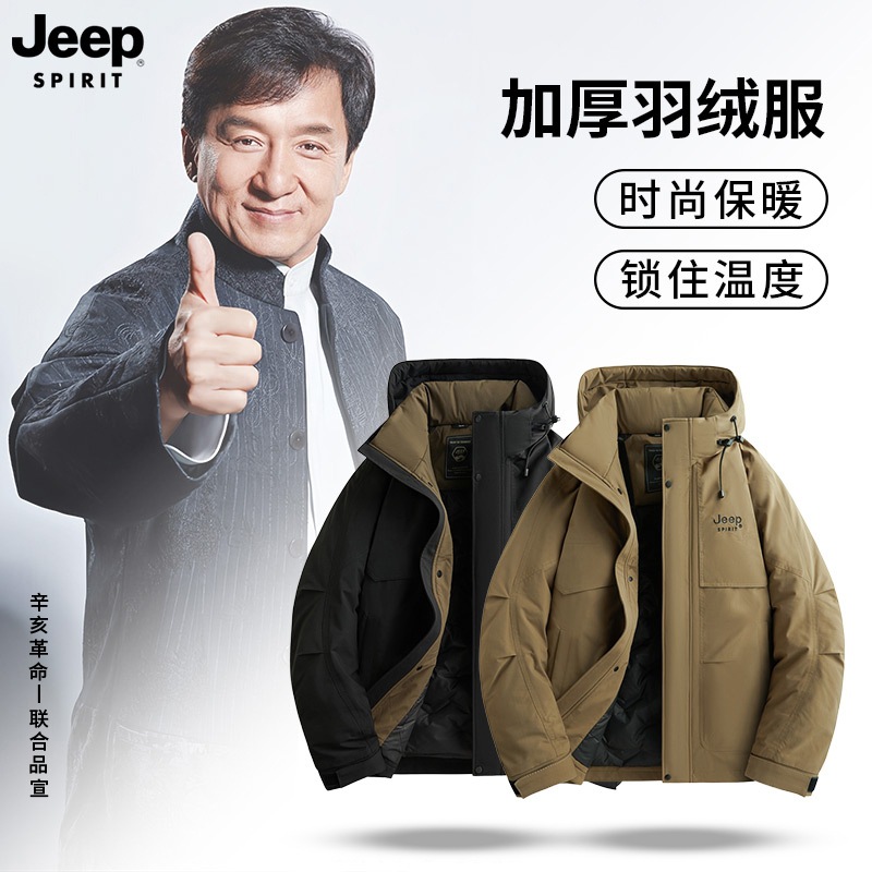 JEEP SPIRIT男性ダウンジャケット秋冬防風フード付き保温新型コート男